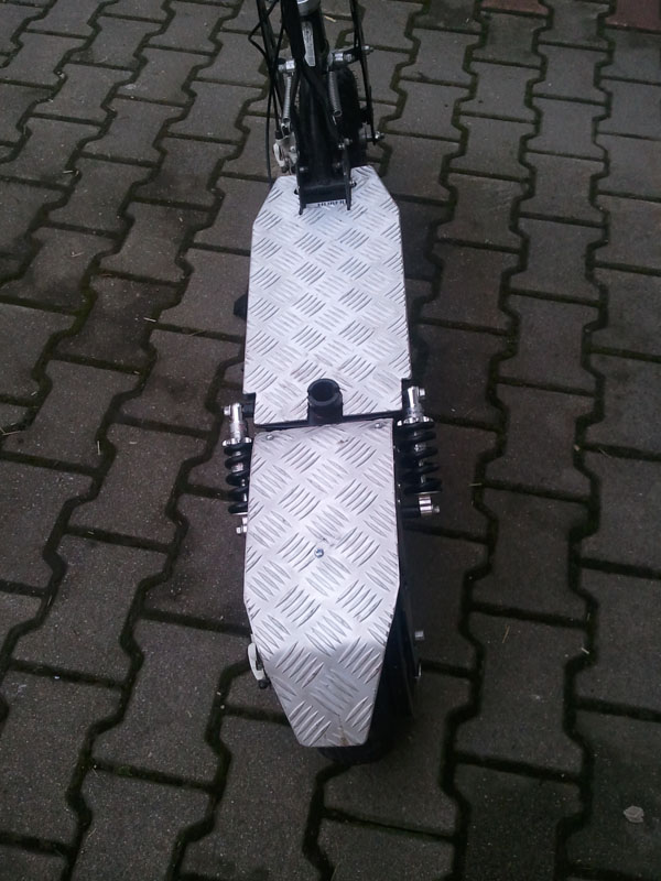 ACHTUNG: Spätestens jetzt sollte klar sein, dass es sich bei meinem Umbau nicht um ein Spielzeug handelt, also nichts für Kinderhände. Ich empfehle Jedem das Tragen von Schutzkleidung und Helm beim Fahren.