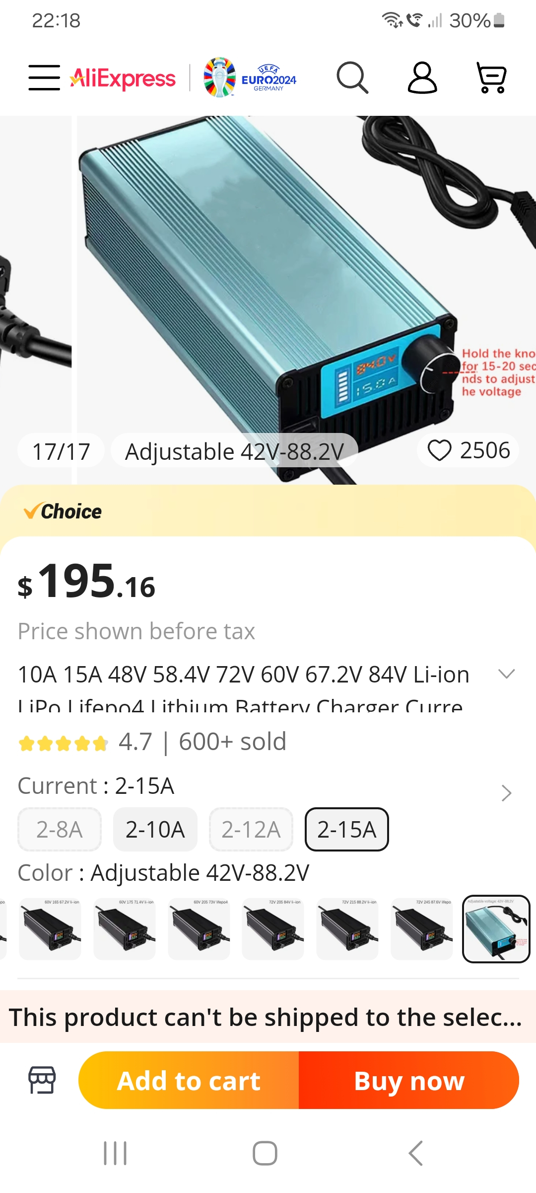 Adjustable Charger Li-Ion/Lipo/LiFePo4 42-88V 2-15A bei AliExpress