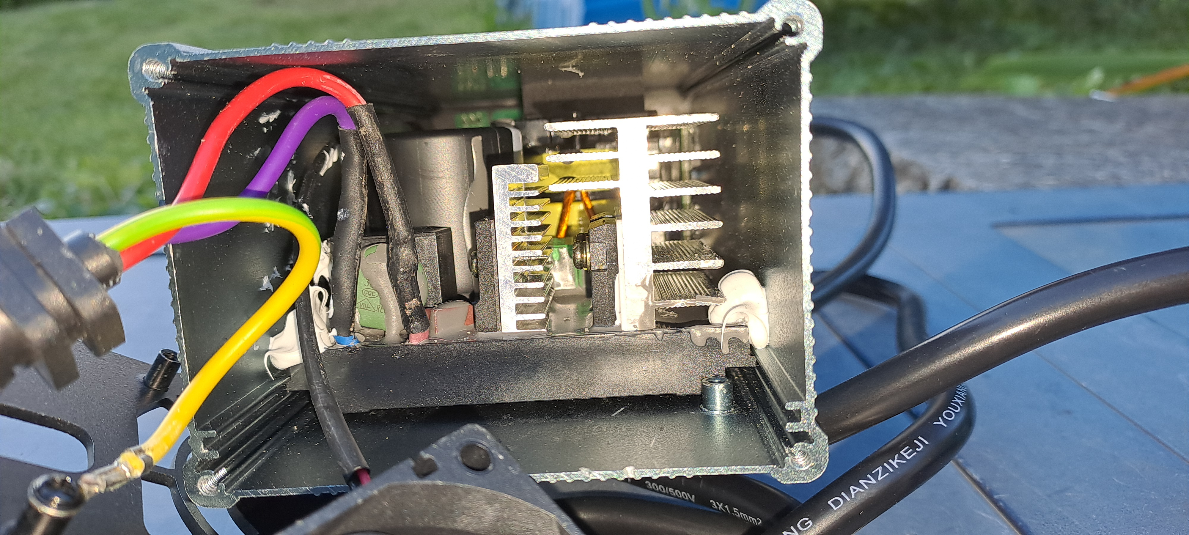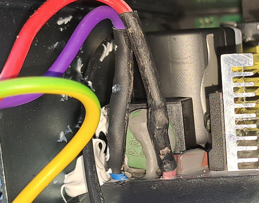 Hatte mich gewundert wieso ein Chinese in einem geschlossenen Gehäuse die Netzkabel zusätzlich mit Schrumpfschlauch "sichert".