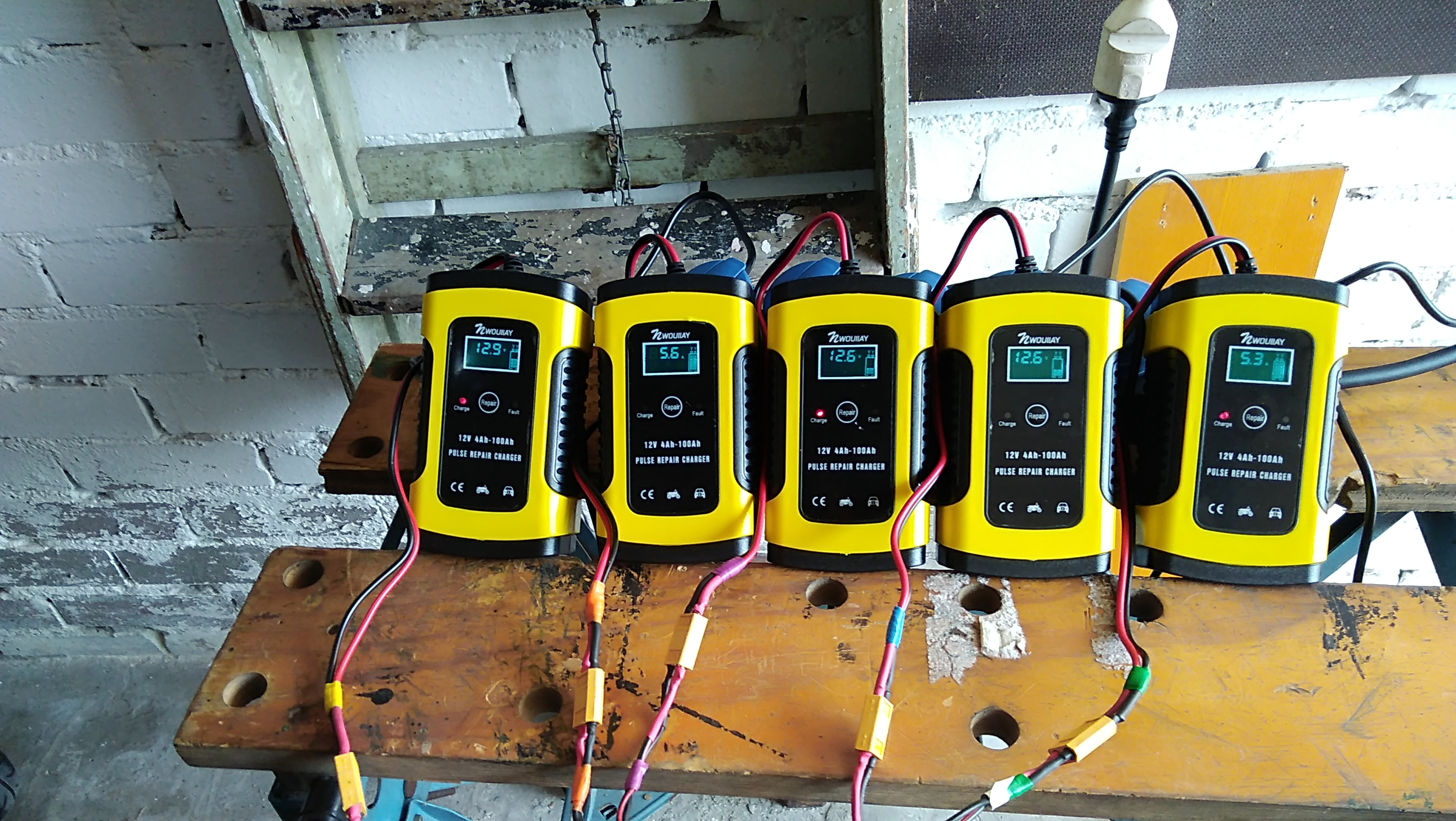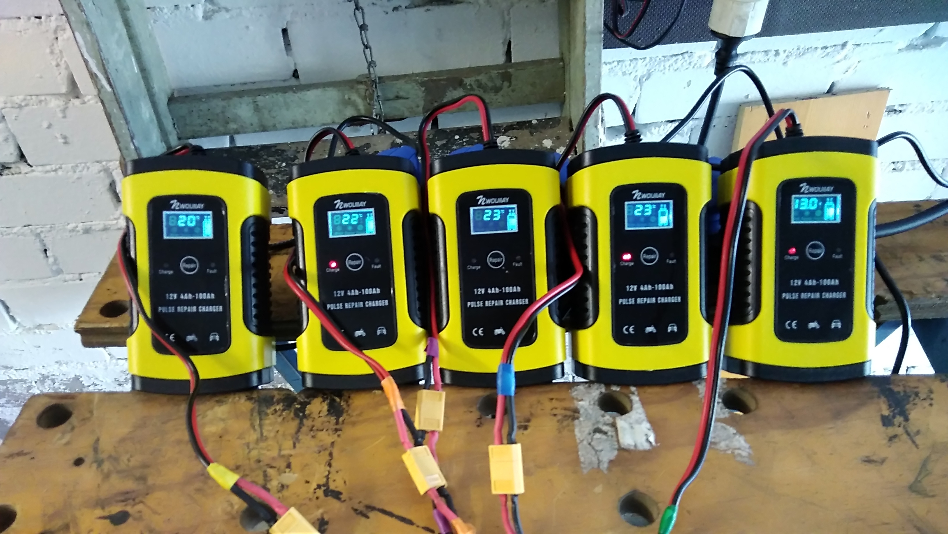 Mit 5 Stk. 12 V, 6 A Ladegeräten parrallel laden