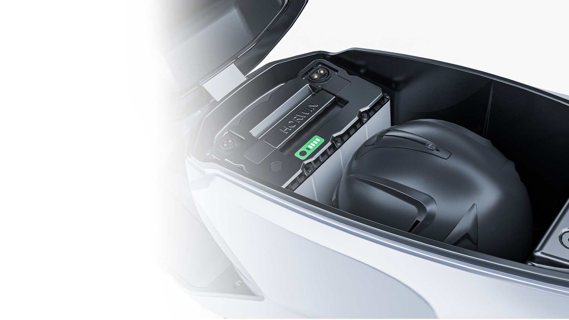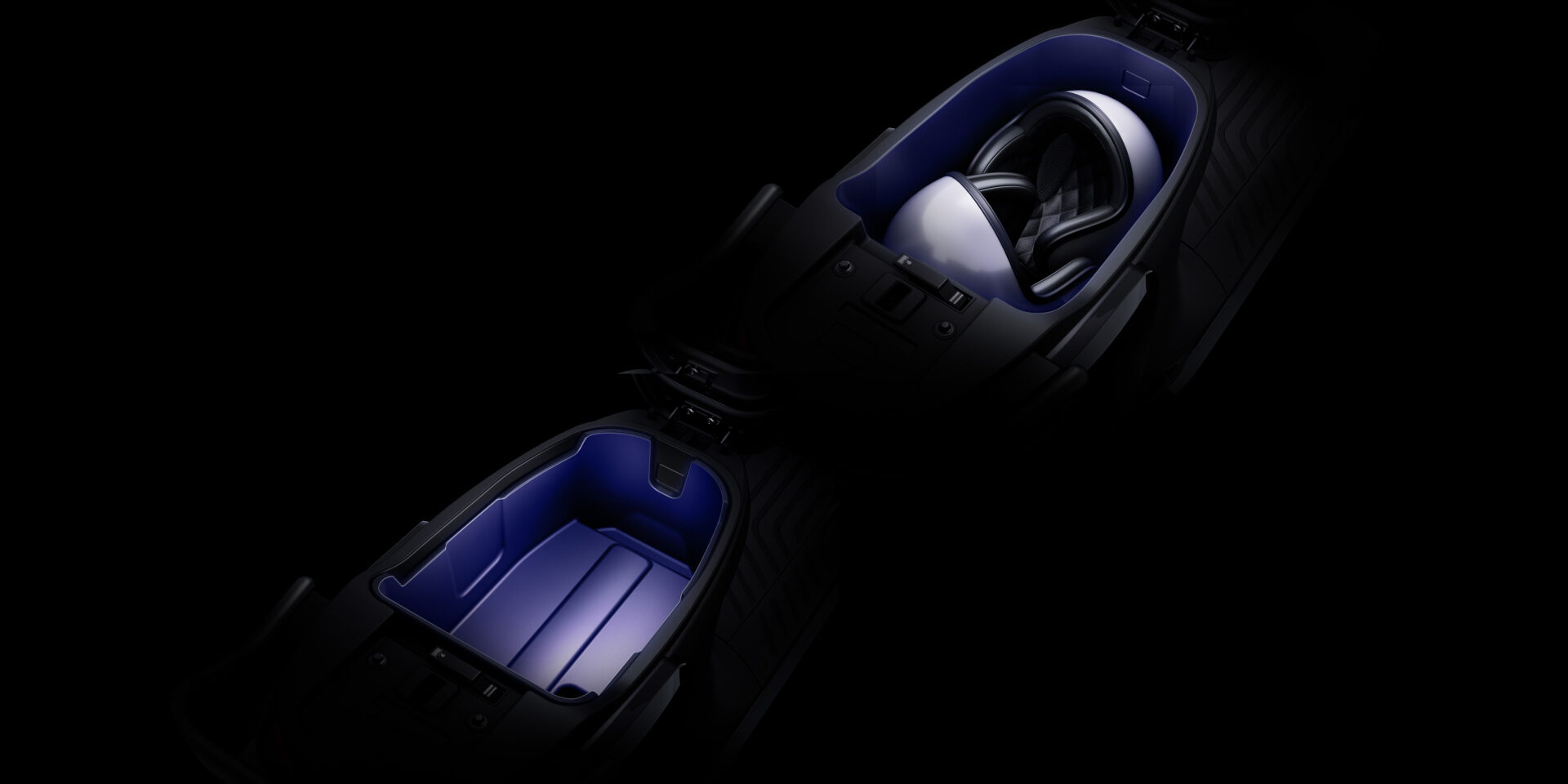 UNU Scooter Pro , hat einen Monster-helmfach. Zwei Akkus UND zwei Helme. 40 Liter.