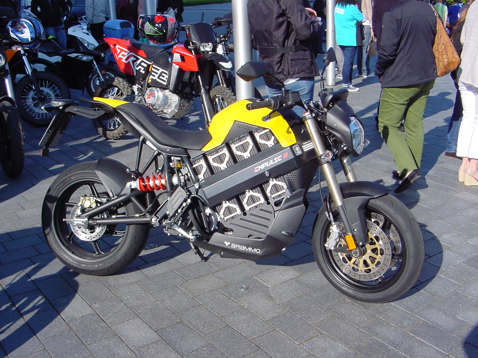 Rechts etwas allein stehend ein Elmoto, daneben zwei E-Motorräder, vorn links auf der Abbiegespur der Elektro-Longboardfahrer, und die auf Segways stehende "Horde" da vorn war naturgemäß trotz Stau ständig in Bewegung.