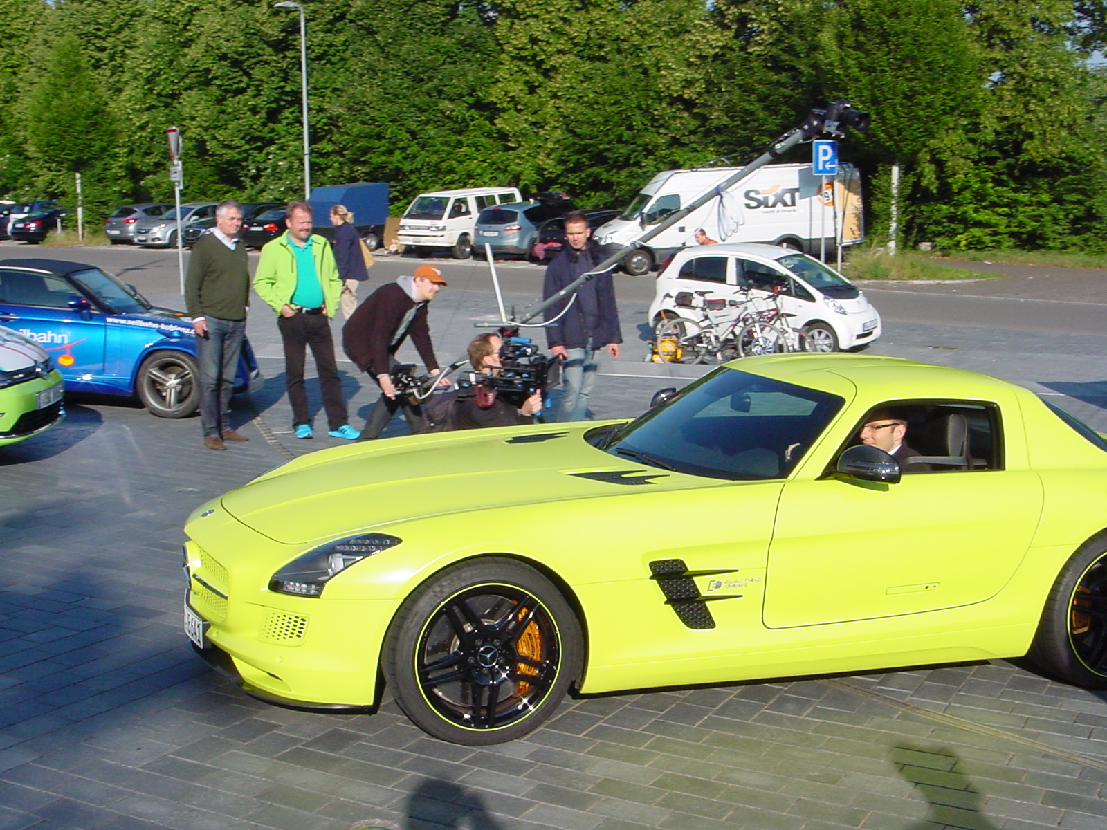 Das vermutlich mit Abstand leistungsstärkste E-Fahrzeug des Events, ein AMG SLR ED im üblichen Leucht-Zitrone-Lack: