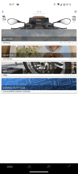 Das passt ganz gut zu meinem Eindruck. Du startest die App, gibst das Ziel ein, dann los und alles ist gut. Bei einer Pause geht die App in den Hintergrund und der Roller ruft sie für das Navi wieder auf. Dann wird es klein. Ich starte die App oft gar nicht und mache das Navi erst unterwegs an. Das geht ja mit Android 14, wenn die App seit dem letzten Start des Handys mal gestartet war, ist sie nur im Standby und der Roller weckt sie wieder auf. Ich glaube, dann ist es auch immer klein. Das entspräche Deinen Pausen, App war weg vom Fenster und der Roller ruft sie nach der Pause wieder auf -> klein.Arndt hat geschrieben: Mo 3. Jun 2024, 22:34 Moin Norbert,