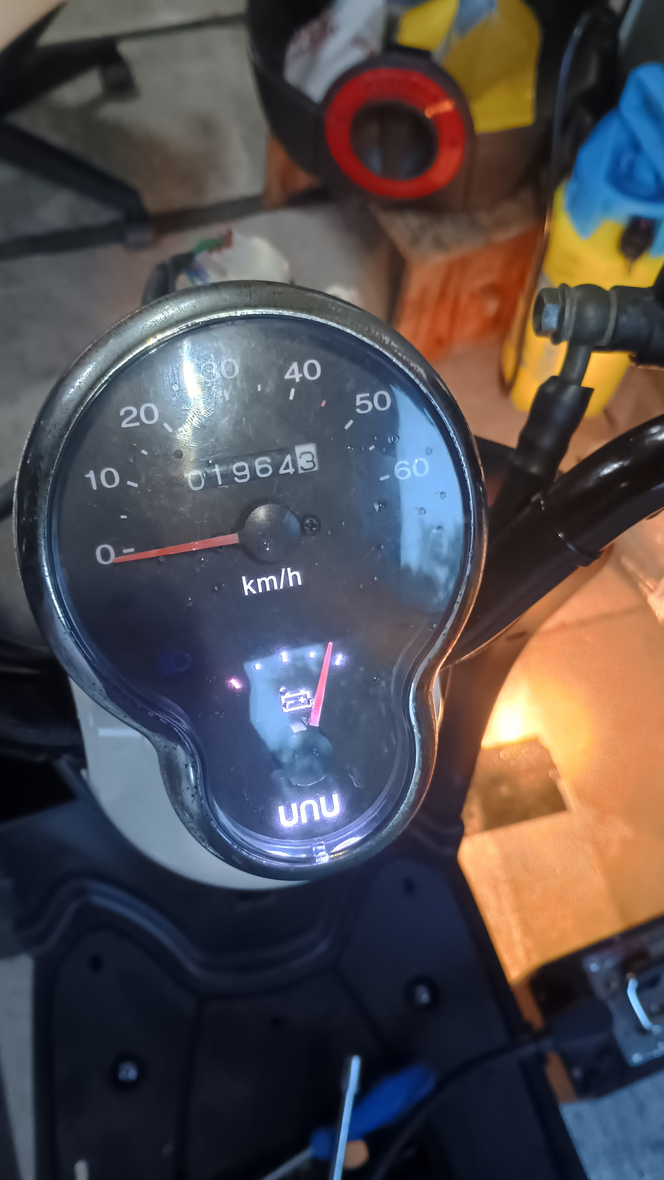 Die weise Zwischenplatte hatte ich noch im April zurecht geschnitten, heute Geräte wieder auf Position gesetzt, Kabelbaum vernünftig verlegt, Teile der Verkleidung vormontiert um zu sehen wo Platz ist und wo nicht. Hinter dem Scheinwerfer ist noch etwas Unordnung, aber es war jetzt zu dunkel in der Garage. Alle Lampen gehen wieder und der Motor dreht. Wenn das Wetter so bleibt wird der Kram morgen komplett fertig gemacht.