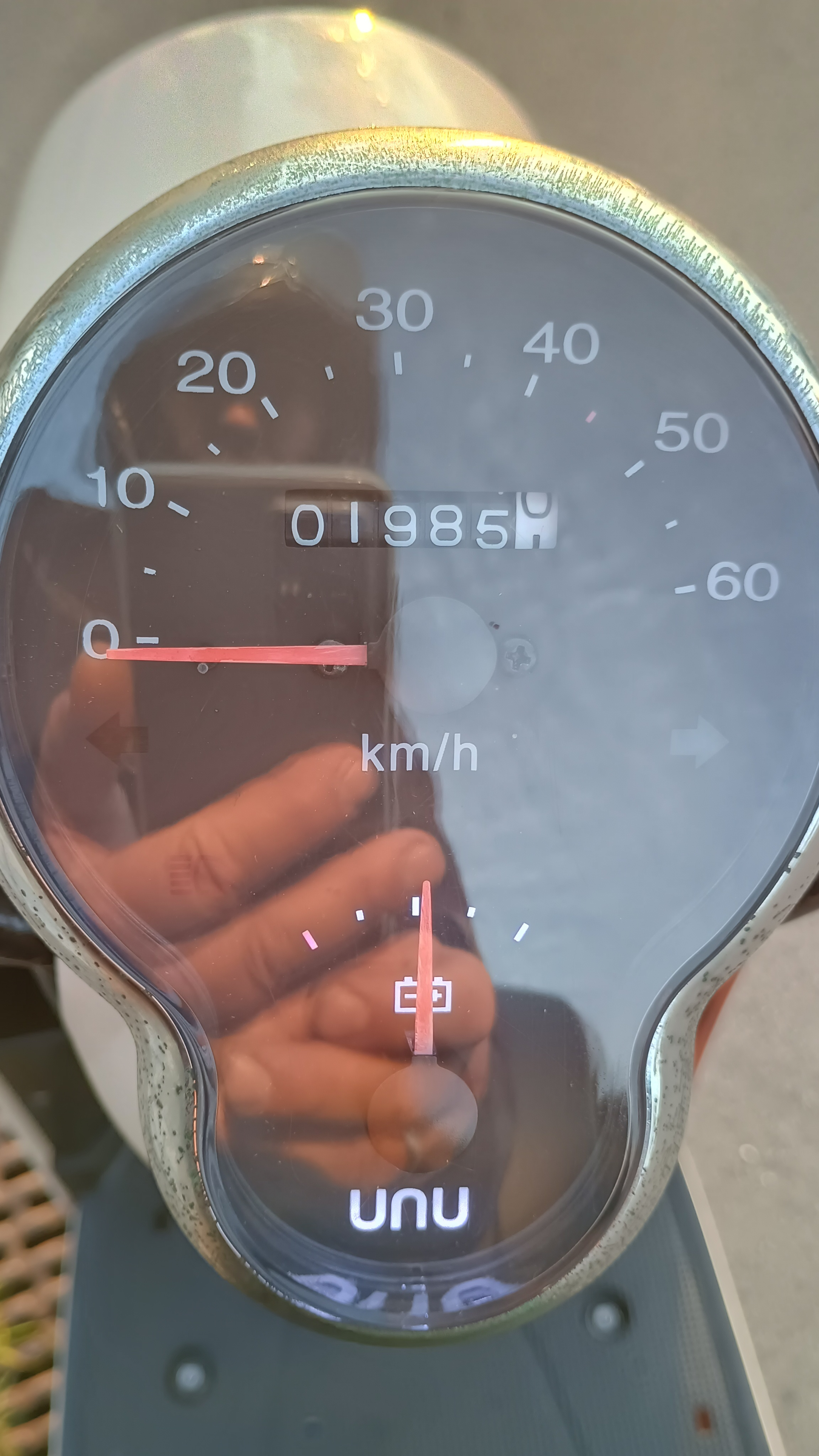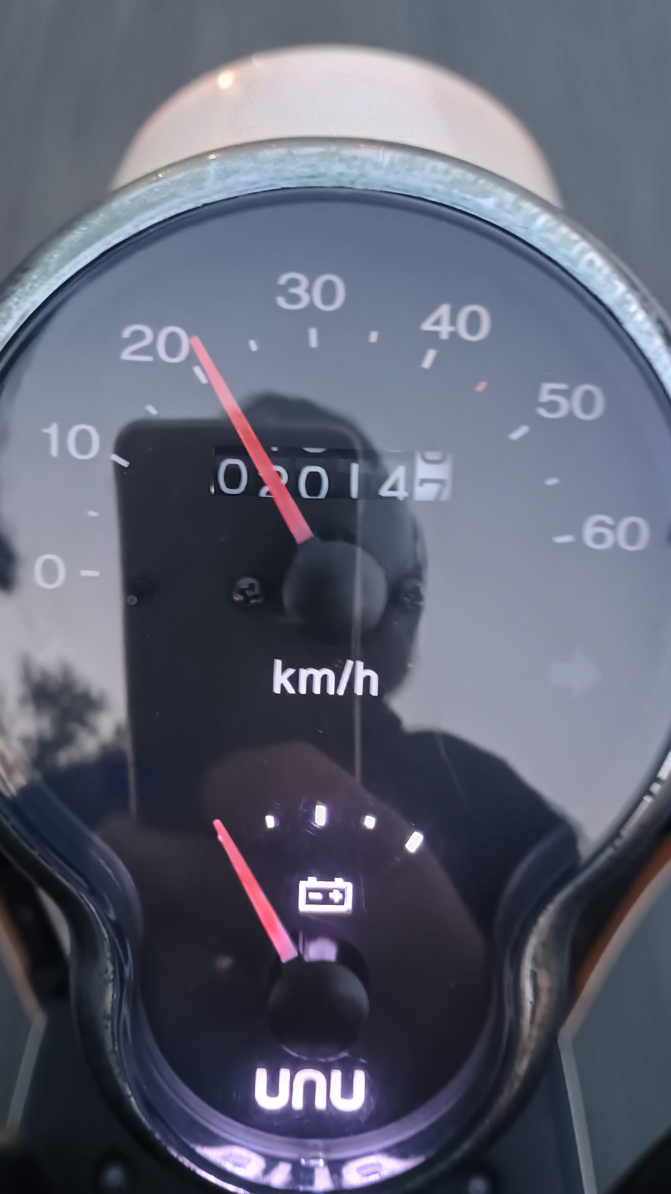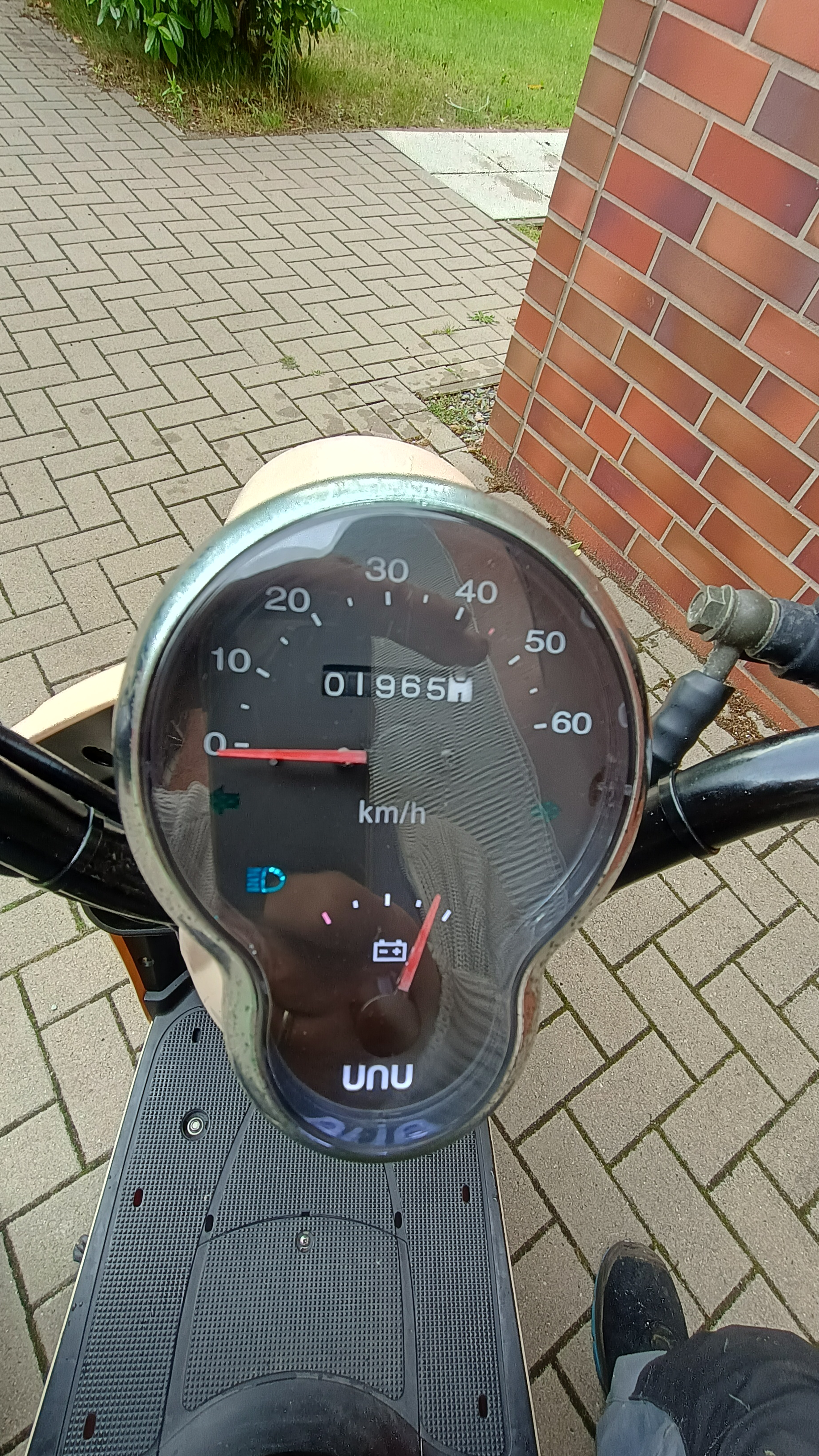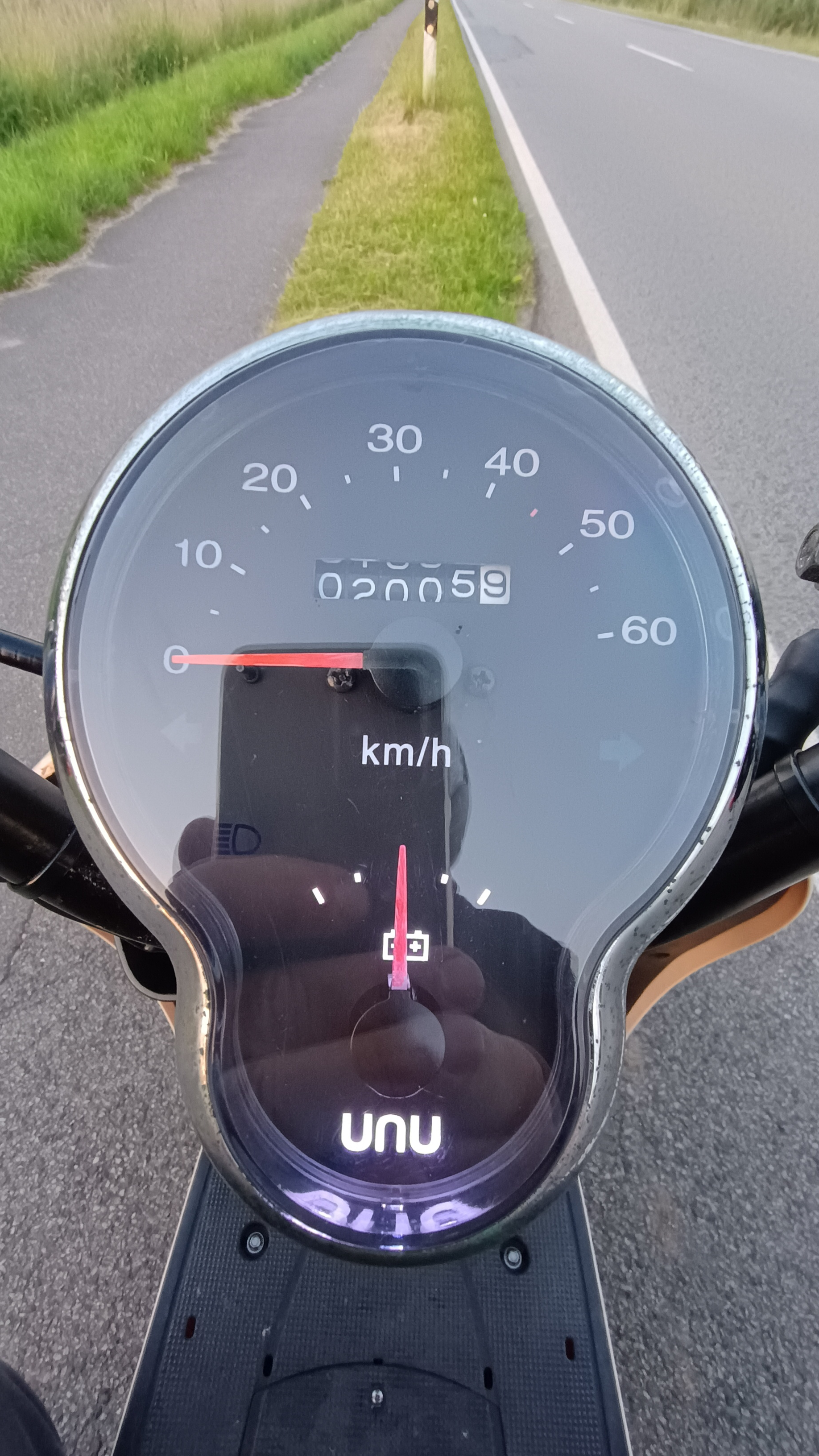 voller Akku 47 km/ h laut Tacho und der Anzeige an der Straße,