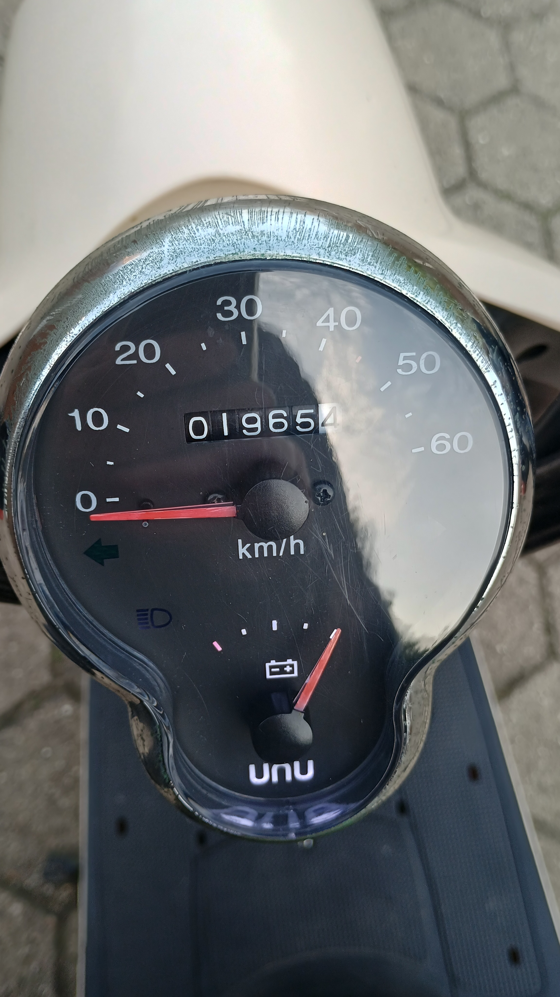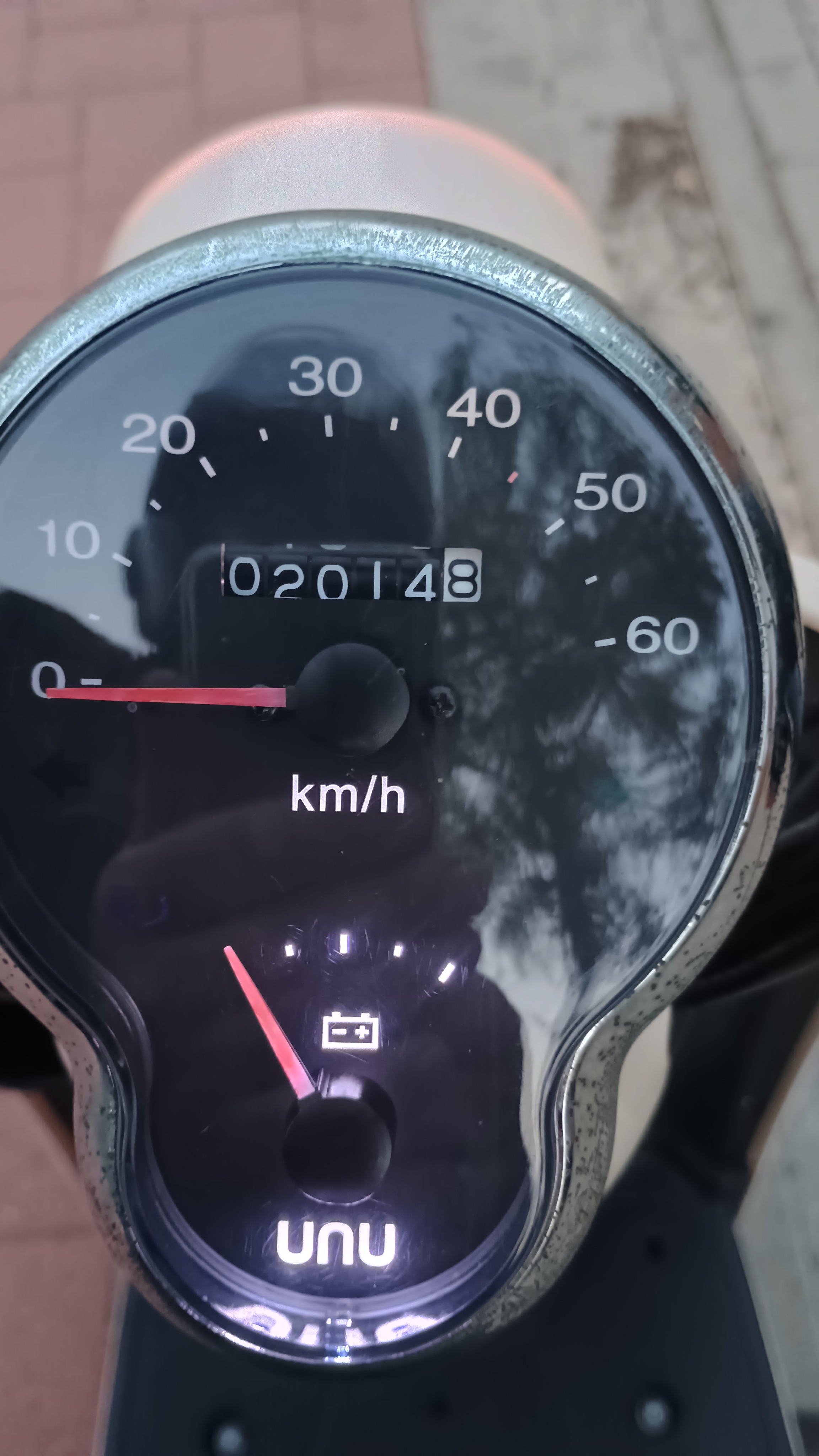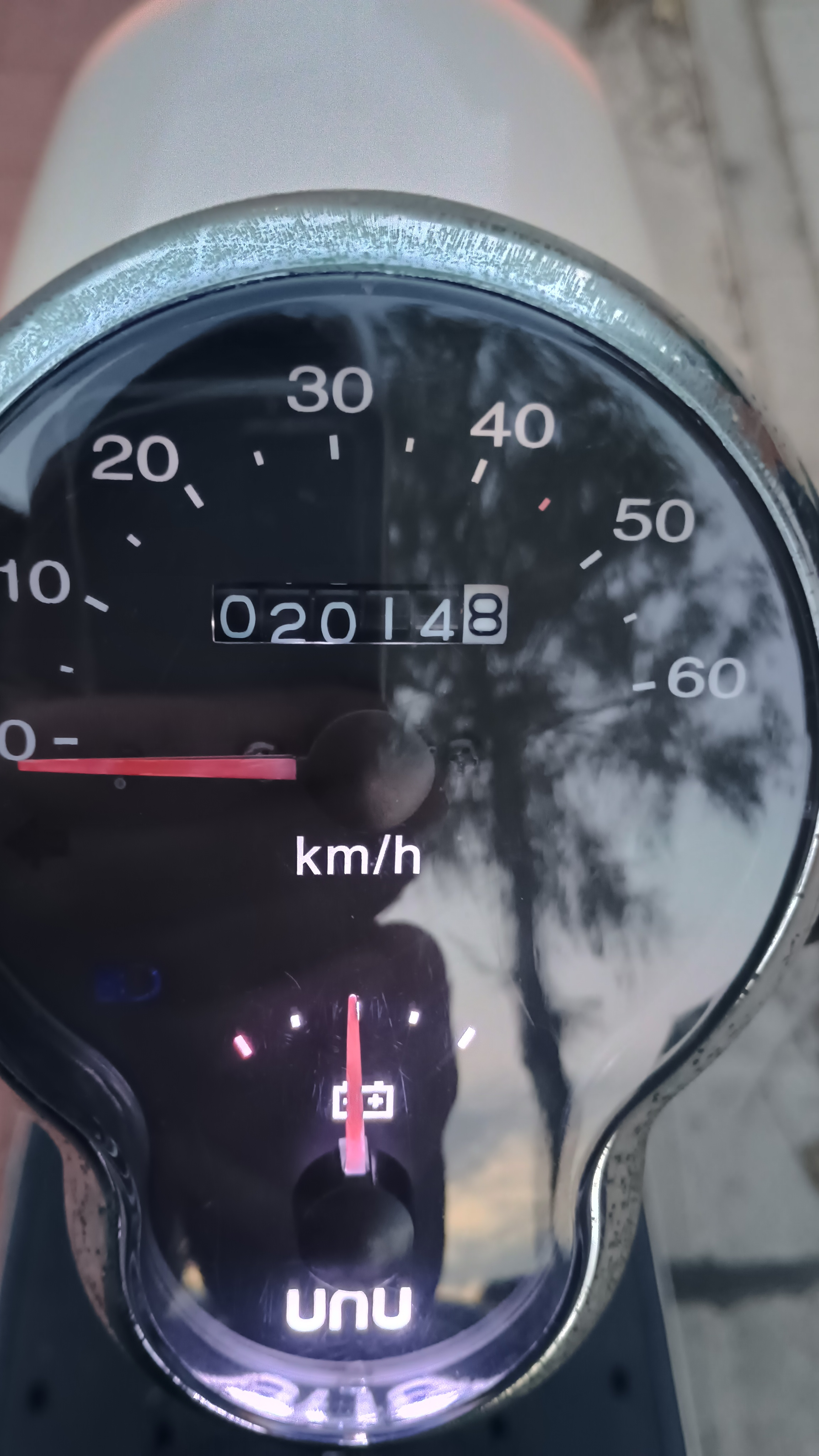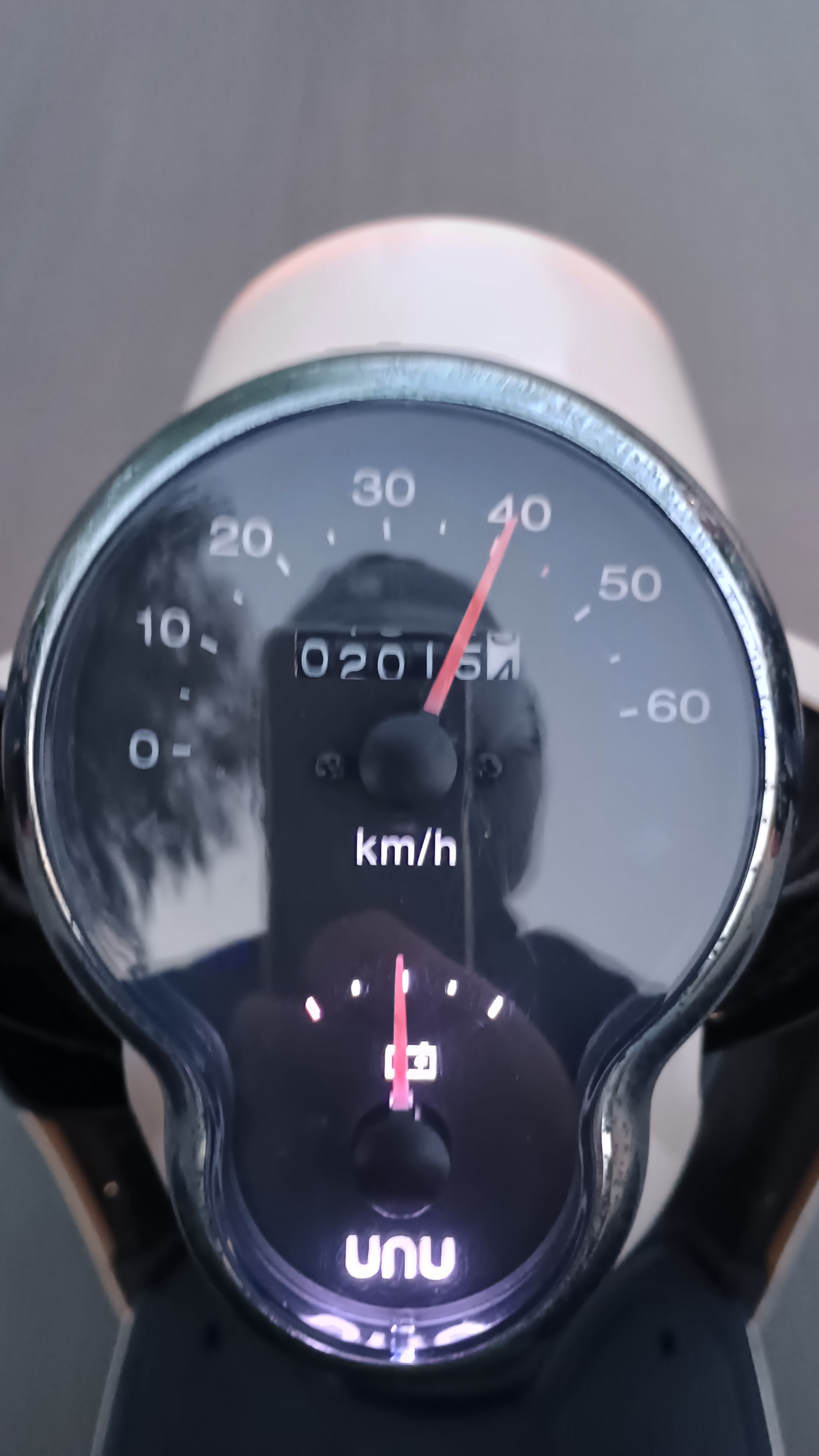 voller Akku 47 km/ h laut Tacho und der Anzeige an der Straße,