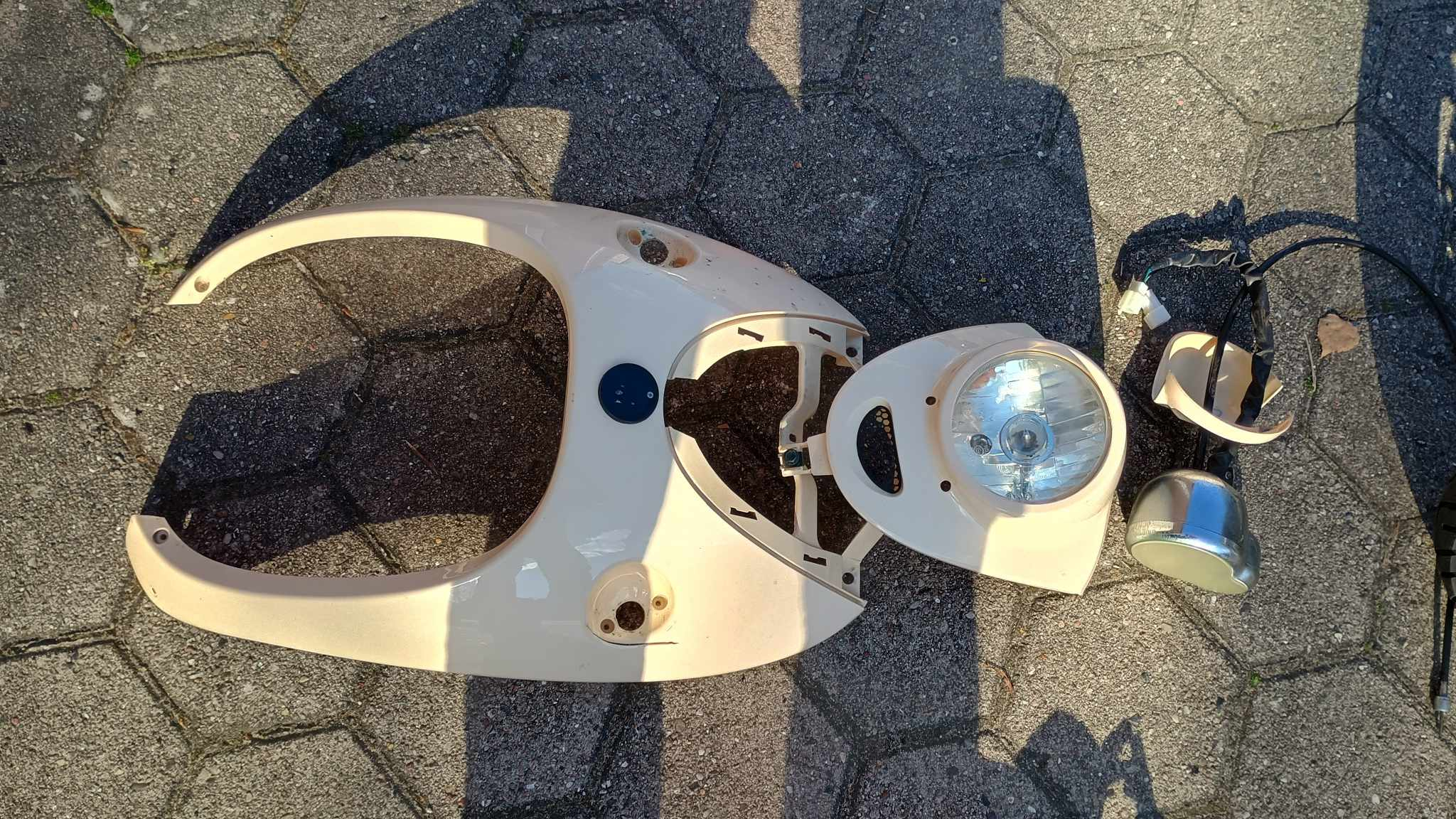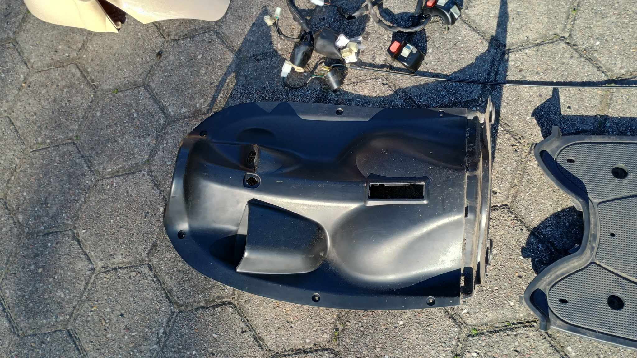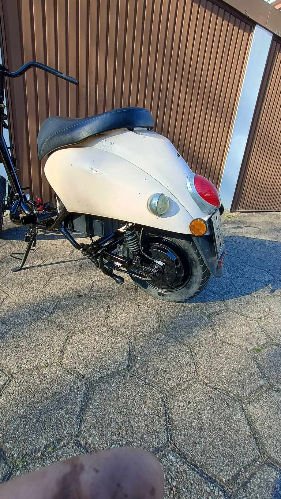 Schalter etwas schwergängig, Blinker rechts und Hupe ohne Funktion, Roller fährt, bremst und leuchtet. Leichter Flugrost, Alukorrosion , 2 Risse in der Verkleidung.