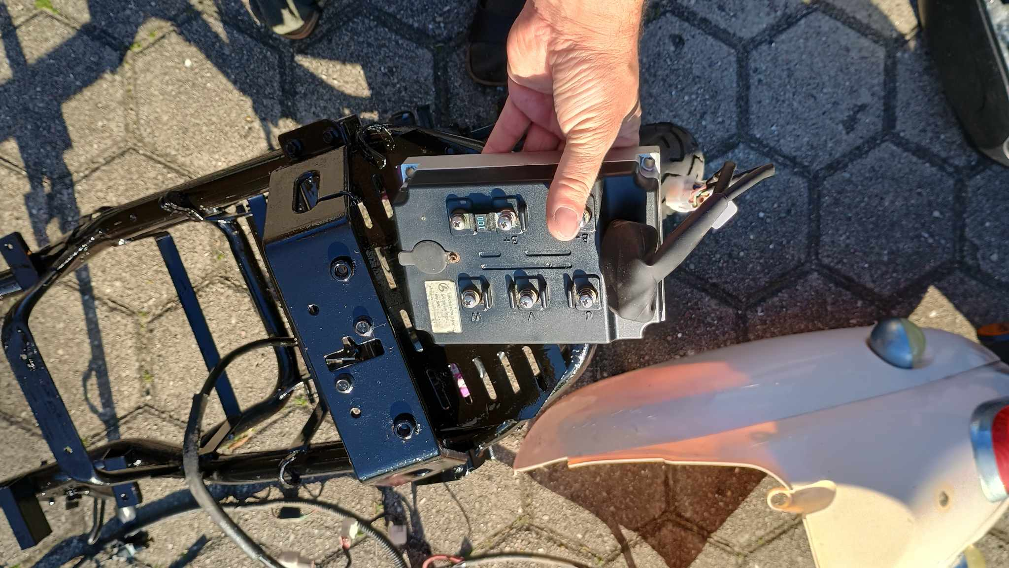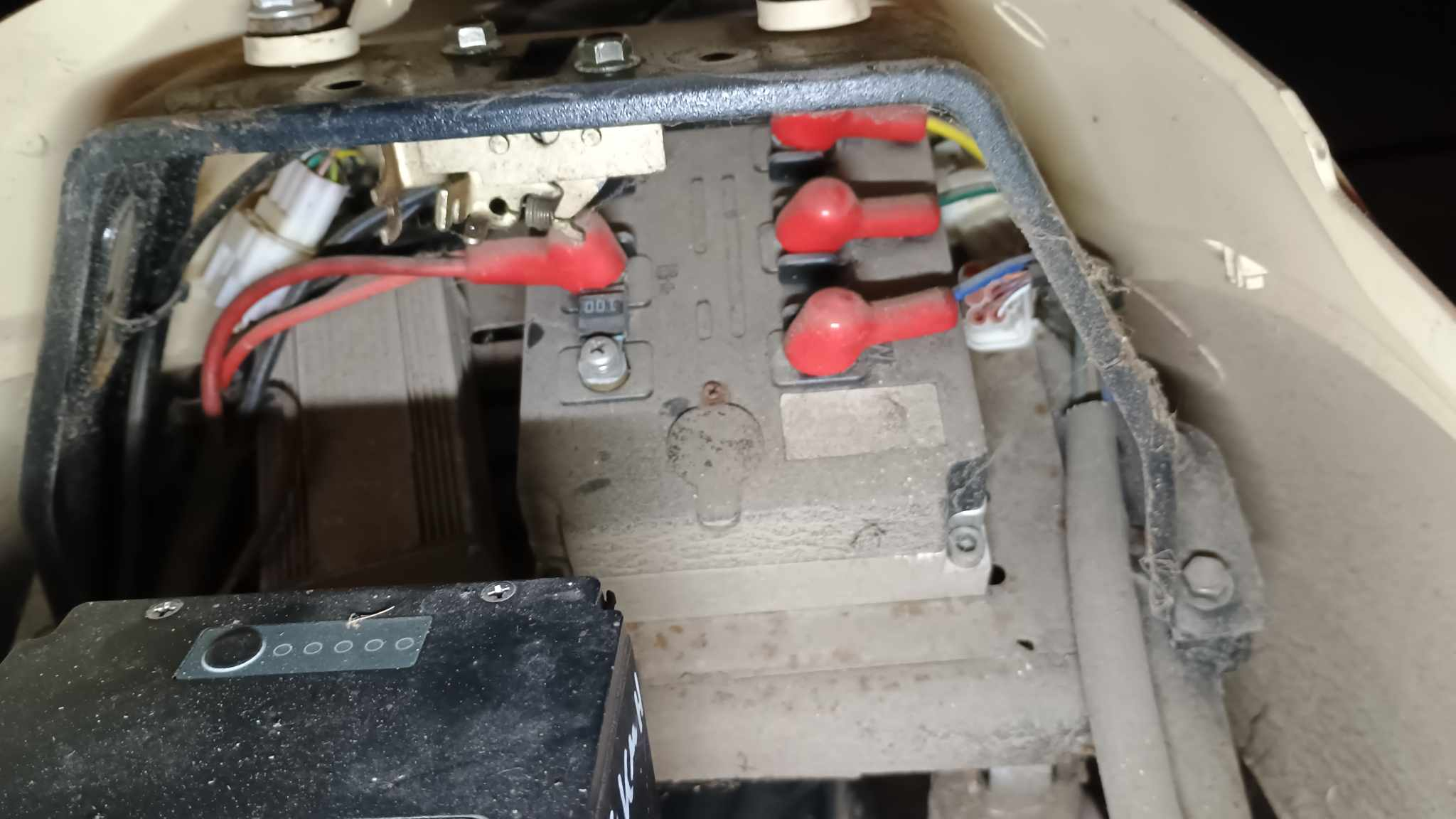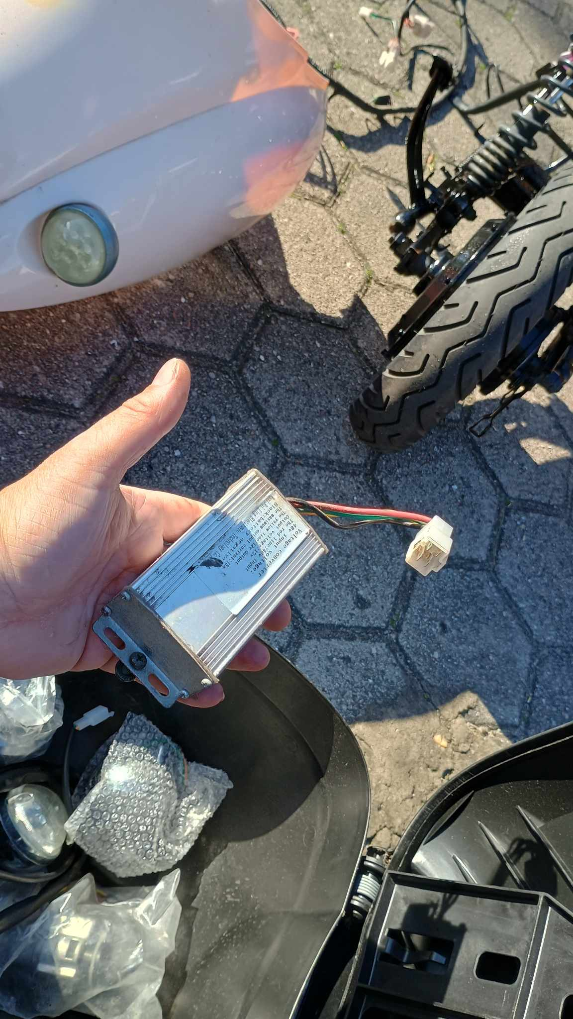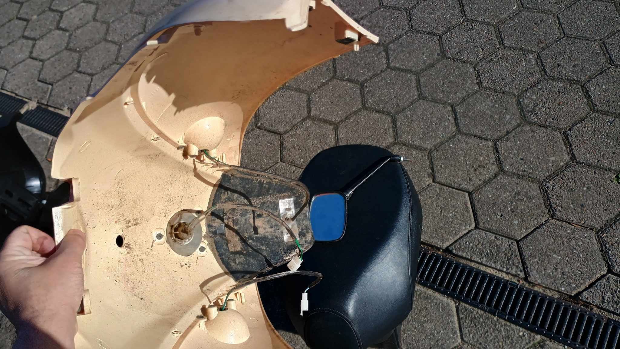 Schalter etwas schwergängig, Blinker rechts und Hupe ohne Funktion, Roller fährt, bremst und leuchtet. Leichter Flugrost, Alukorrosion , 2 Risse in der Verkleidung.