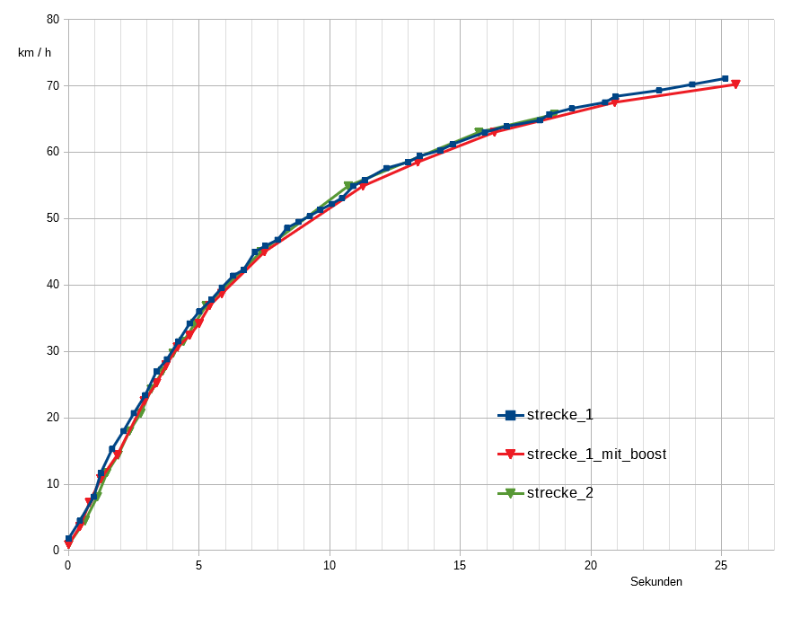 Also von 0 auf 50 in ~9s und danach wird's zäh.
