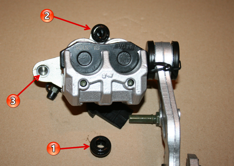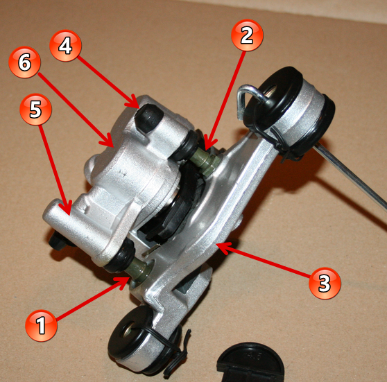 Danke Herbert! Damit hat das Quietschen beim Rückwärtsschieben ein Ende (war bei mir beim Hinterrad)herby87 hat geschrieben: Die Gummis (1 und 2) reinigen, ebenso die Bohrung/Führung (3), dann wenn vorhanden die Gummis mit Silikonöl einsprühen, das Silikonöl dient einerseits als Schmiermittel und andrerseits als Konservierung für die Gummis.