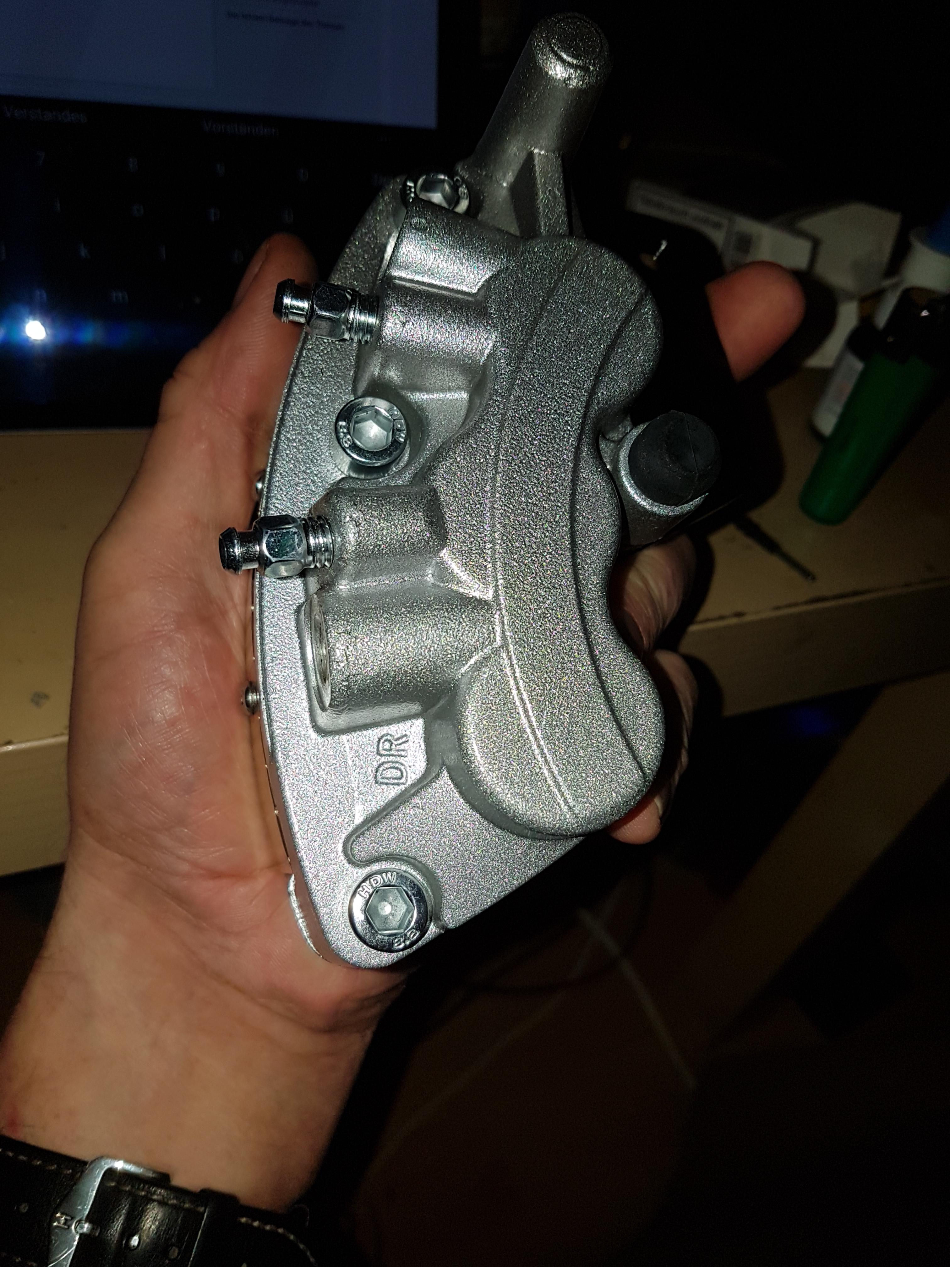 Die Zuordnung der Bremshebel zu den Bremsen ist wohl das erste, was man sich erarbeitet, bevor man das erste mal mit einem Roller fährt ... Denn auf rutschigem Untergrund will ich hauptsächlich mit der Hinterradbremse bremsen. Das erstmal als Anschiss vorneweg zum Thema Fahrsicherheit, verbbunden mit der dringenden Empfehlung, dass es Werkstätten gibt, die Bremsen entlüften.