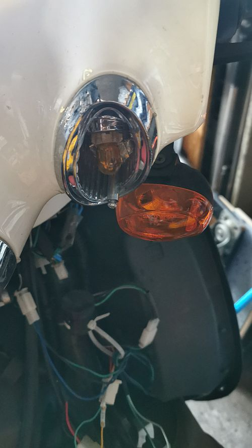 Leider ist auch ein Blinkerglas defekt. Wo bekomme ich das her? Ich werde den Roller die Tage mal so weit zusammenschrauben das ich ihn Probefahren kann. Das wird spannend. Ich bin noch nie Roller gefahren und seit über 30 Jahren auf keinem Zweirad mehr gesessen.