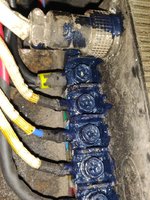 Heute mal das Umfeld gereinigt, das Schutzblech getauscht und angepasst, alle Kabel hübsch gemacht, die Kontakte poliert und alles wieder zusammen geschraubt. Den Massepunkt am Controller hatte ich noch nie ab, der war natürlich auch lose. Der Fehler mit Masse auf dem Rahmen ist nicht weg, da kann ich den Motor schon mal ausschließen. Die Kontakte sind jetzt schön fest angezogen und erstmal mit Lackstift komplett versiegelt.