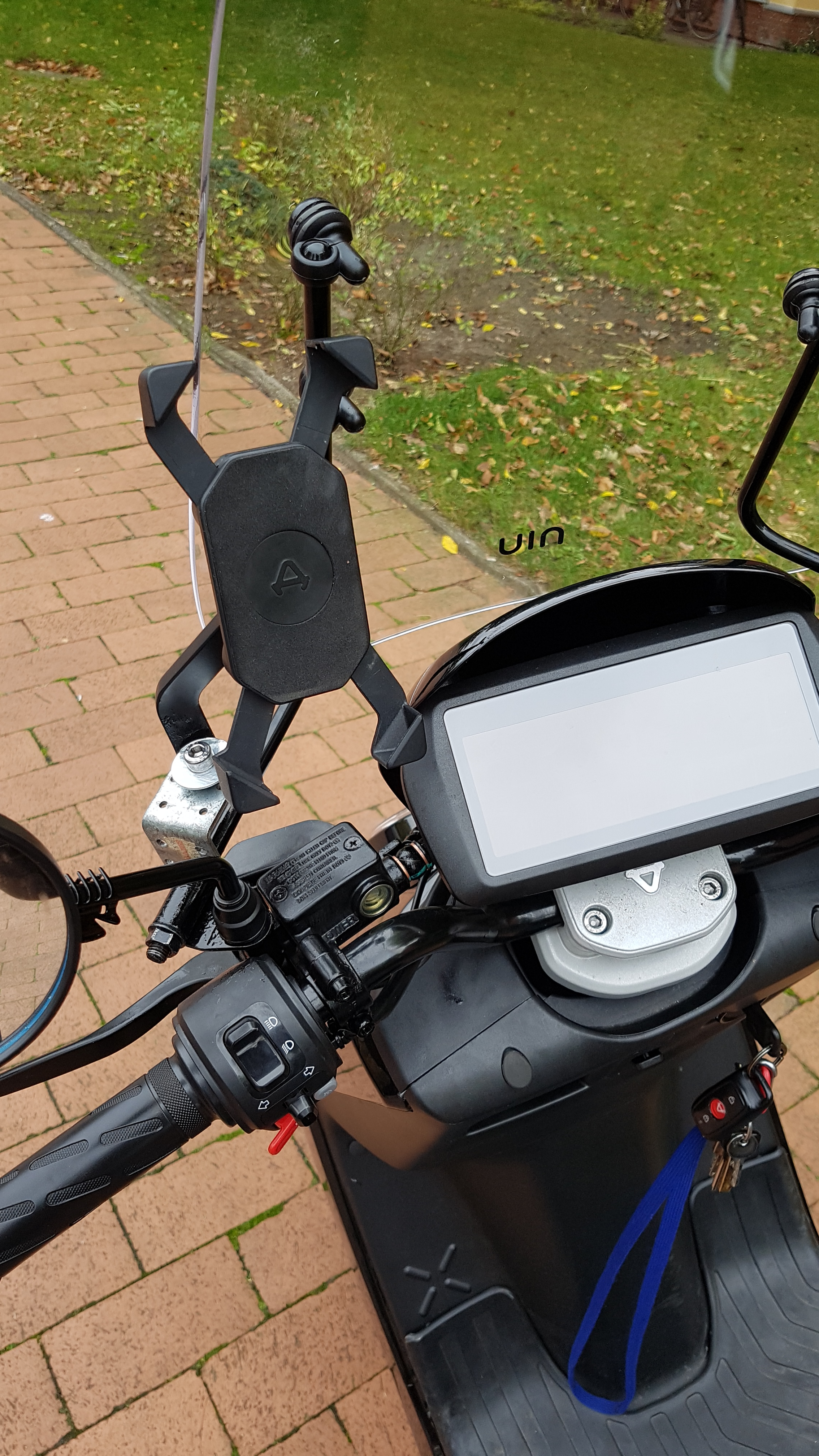 Habe das erstmal so gelöst mit der Wetterschutzscheibe und der Handyhalterung.