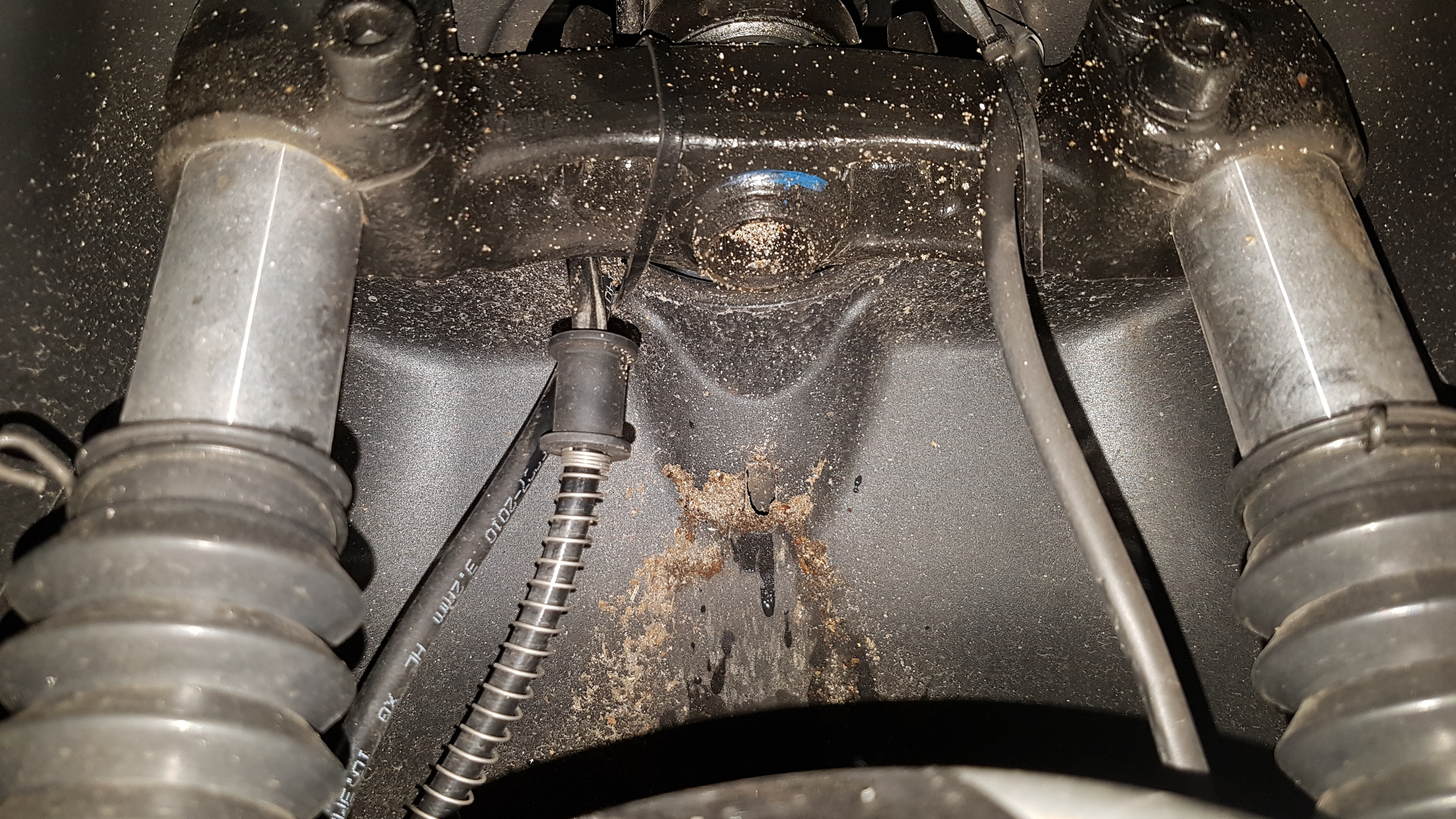 Mist hatte vergessen die freiliegenden Standrohre der Federbeine mit Silikonfett einzupindeln. Werde das morgen mal nachholen.