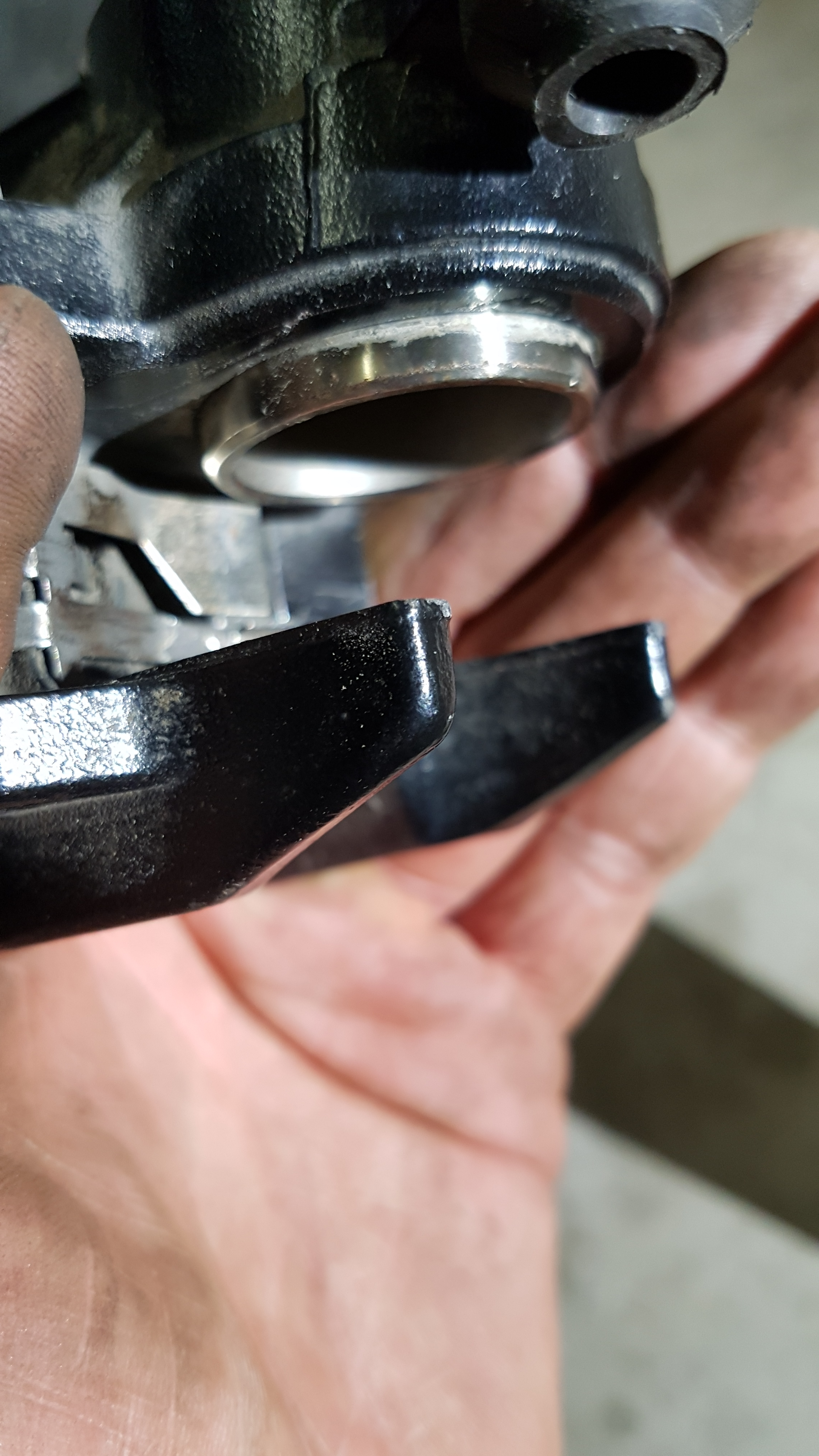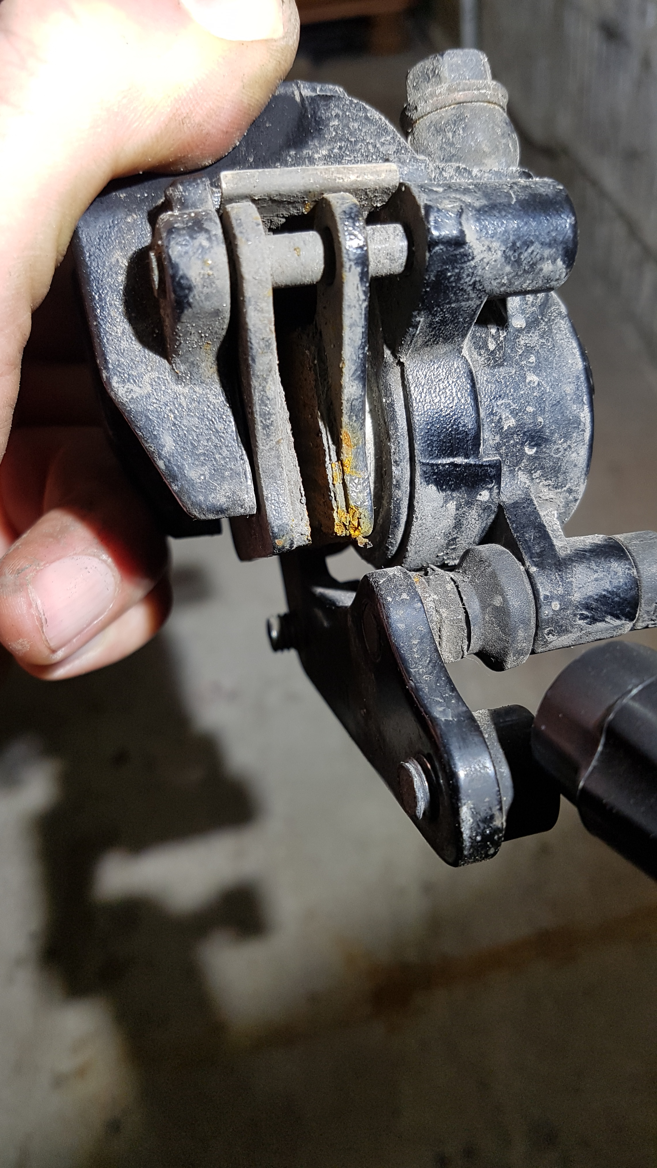 Den Kolben hab ich mit einem Kolbenrücksteller zurückgedrückt. Besser ist das. Zu den Führungsbolzen, die waren fast trocken obwohl ich sie dünn mit Lagerfett ( es gibt auch anderes Fett dafür aber ich hatte es noch da ) eingerieben hatte.