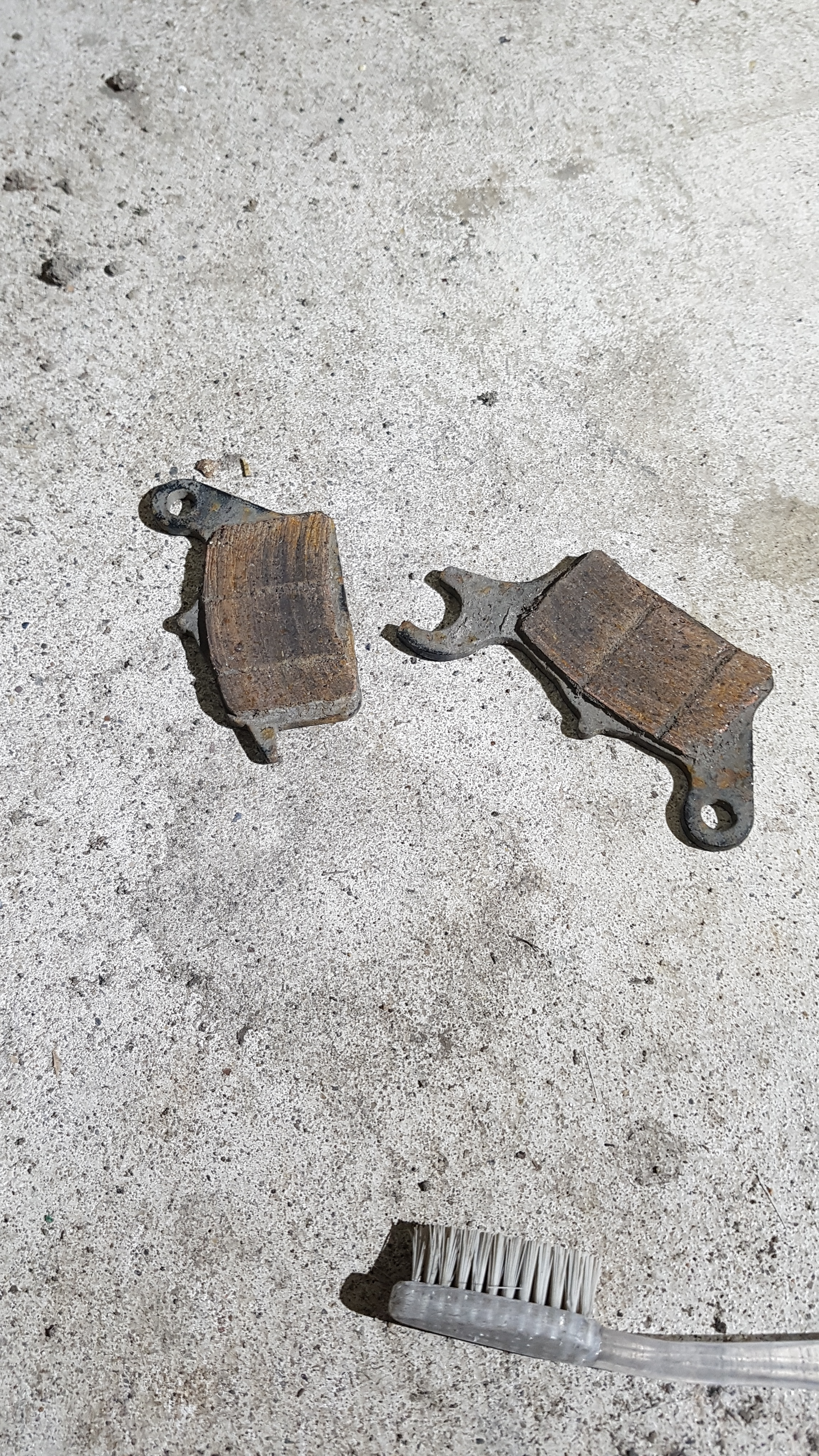 Vorne nach 20020 km noch knapp 3mm Belag, da geht noch was, hinten 1mm, neue sind geordert.