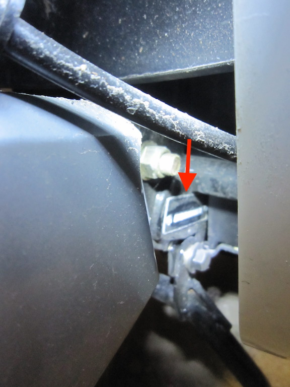 nach einer kleinen nächtlichen Bastelstunde kann ich Dir bei der Suche weiterhelfen: Schau einfach mal (ggf. mit einer Taschenlampe) von Hinterrad aus (die Seite mit der Scheibenbremse) nach vorne hinter die Verkleidung vom Durchstieg. In etwa der Höhe des Mittelständers solltest Du fündig werden.