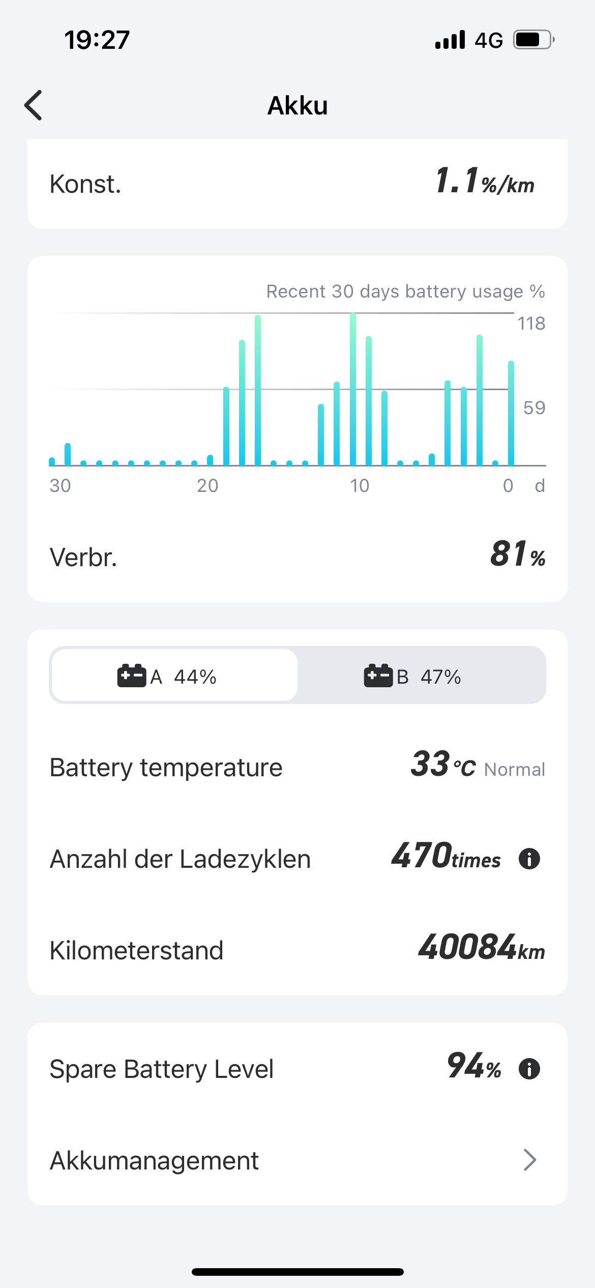 - 05.451km | NIU NQi GTS Pro __ | EZ 06/2020 | 1. Akku | 066 Zyklen | @ MarcusKabele (Akku B = 64 Zyklen)