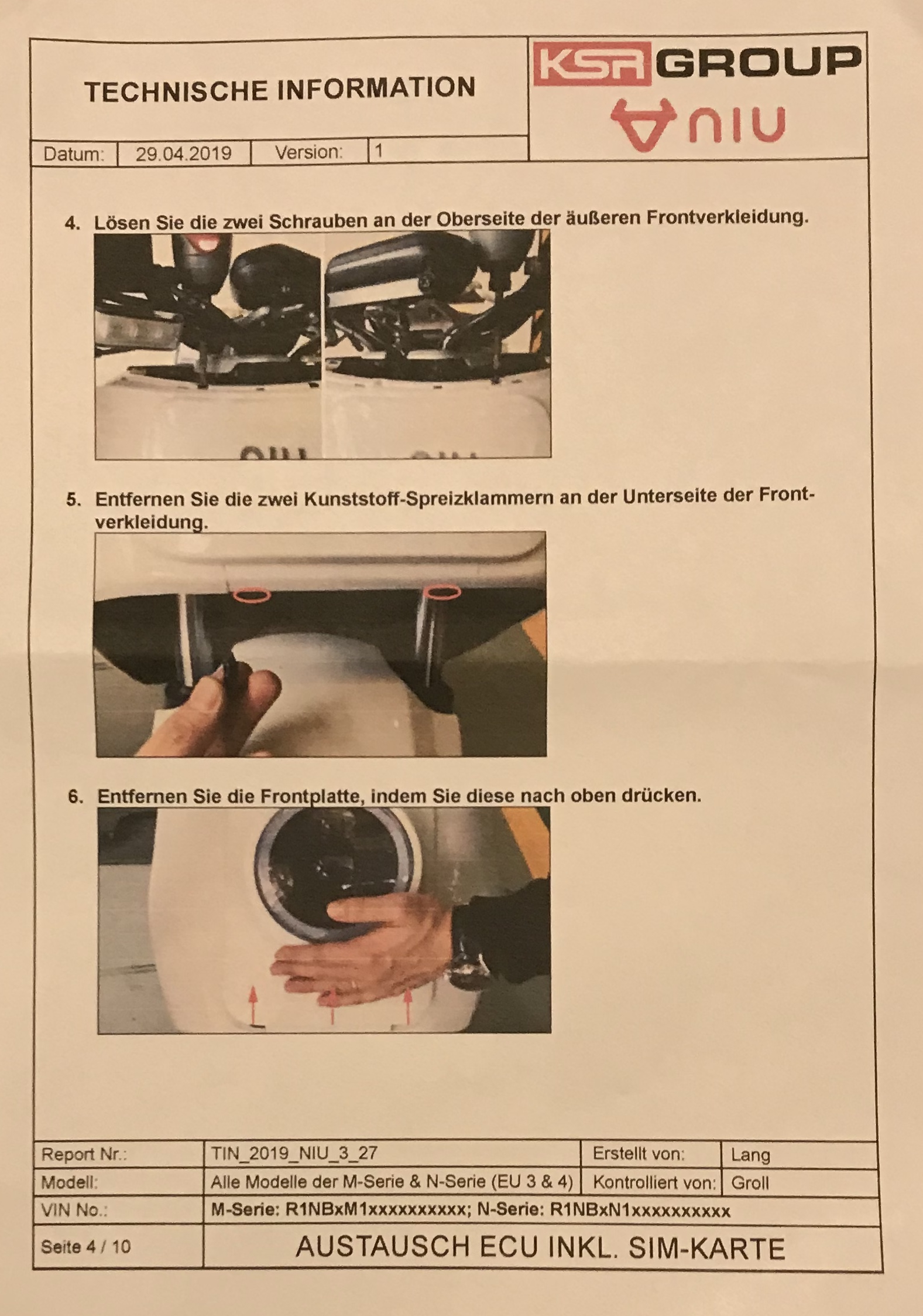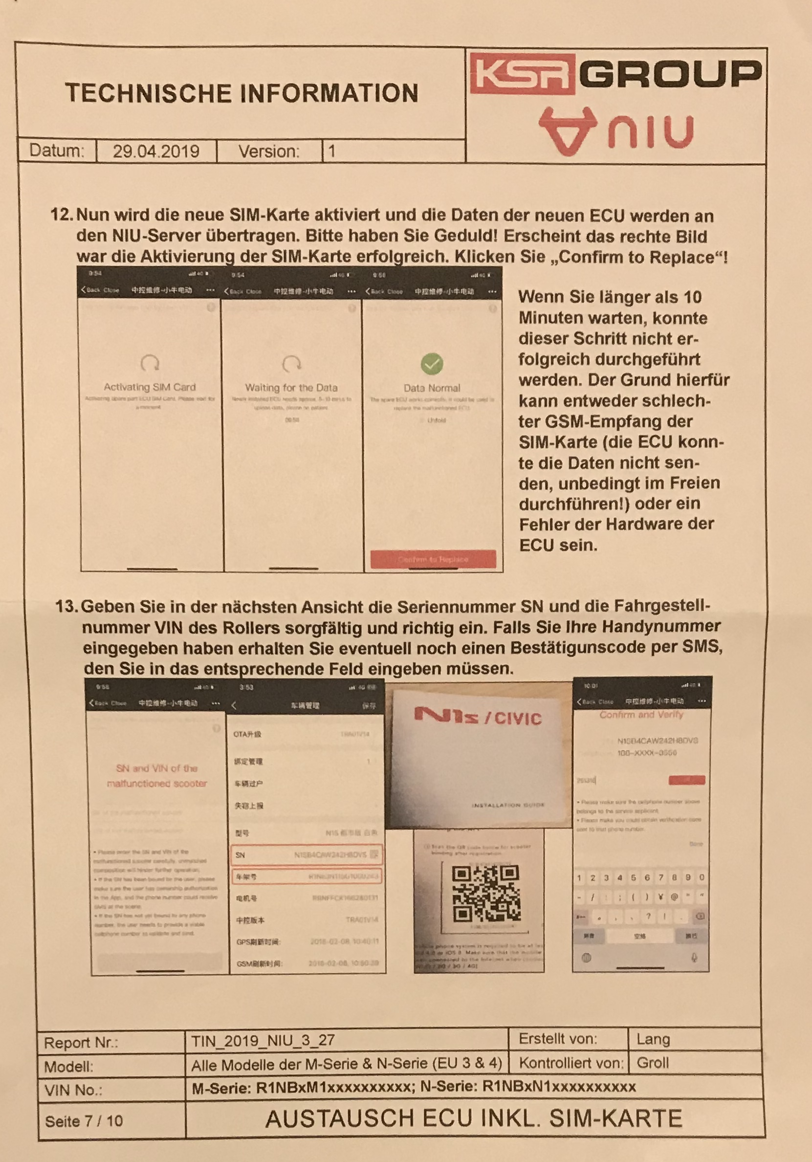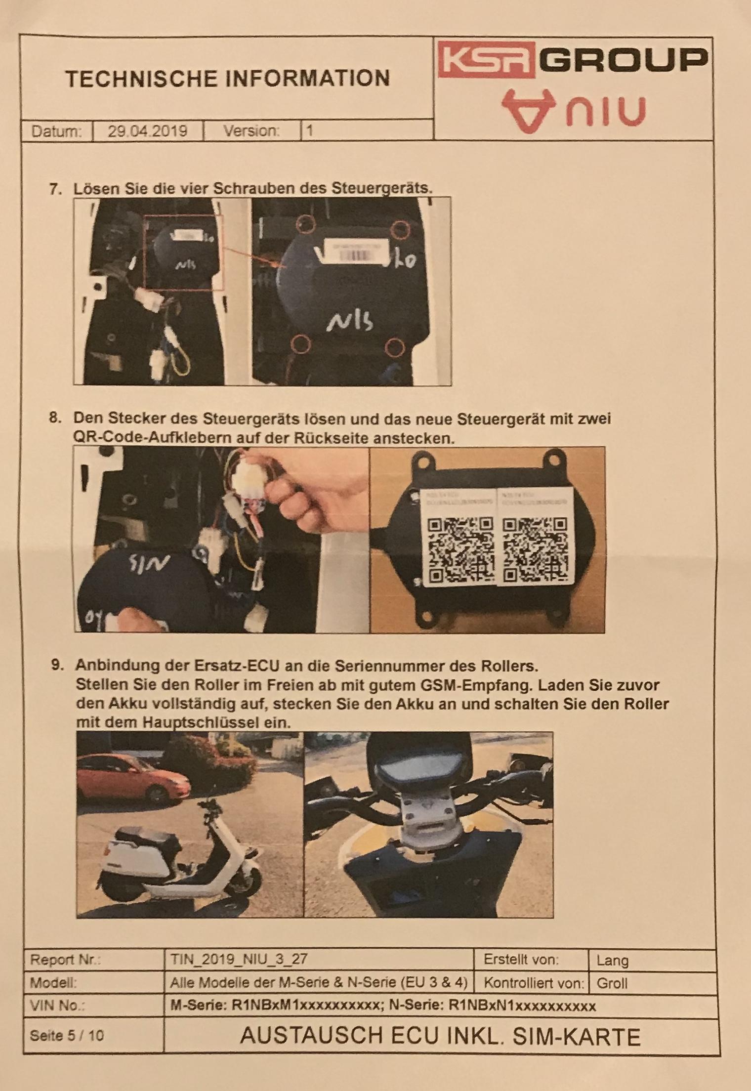 Niu KSR Anleitung "Austausch der ECU bei N-Serie" Version 1, 29.04.2019