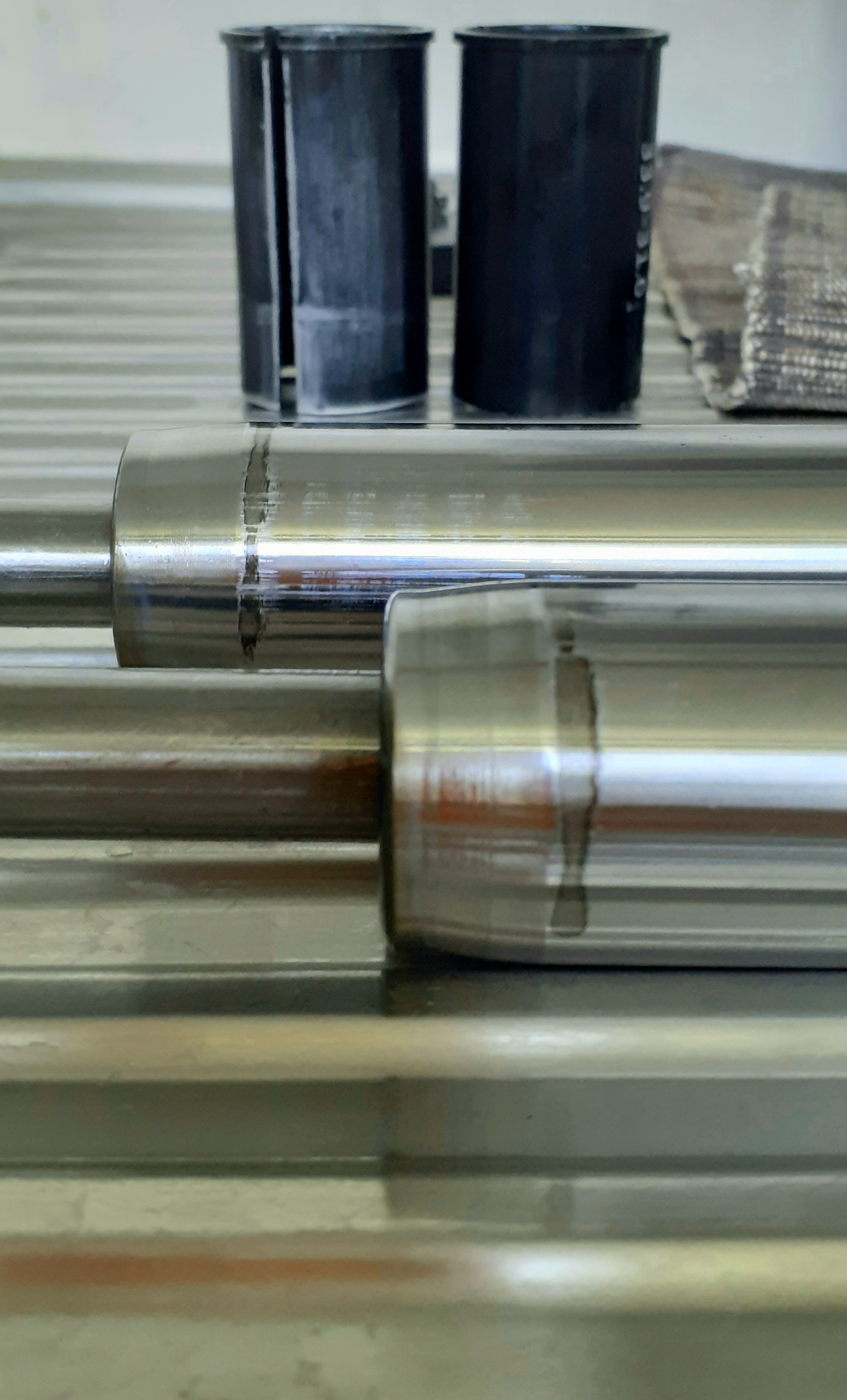 die Rattermarken haben nichts mit dem abgeschliffenen Hülsen im Hintergrund zu tun. Der eine musste etwas stärker geglättet werden, weil die Gabelbrücke einen leichten Schlag hat.