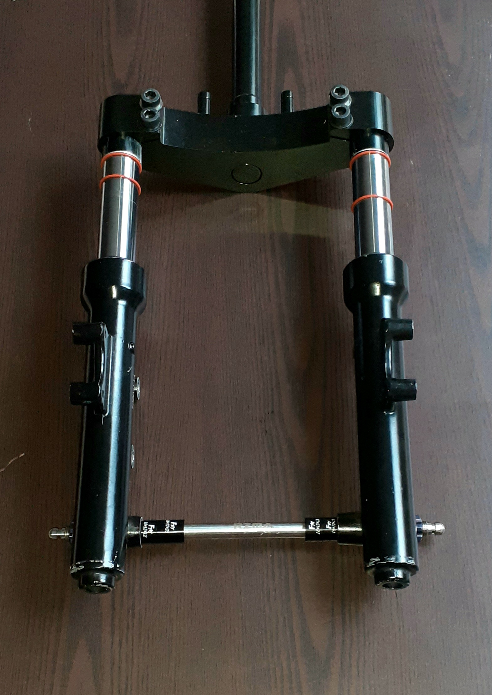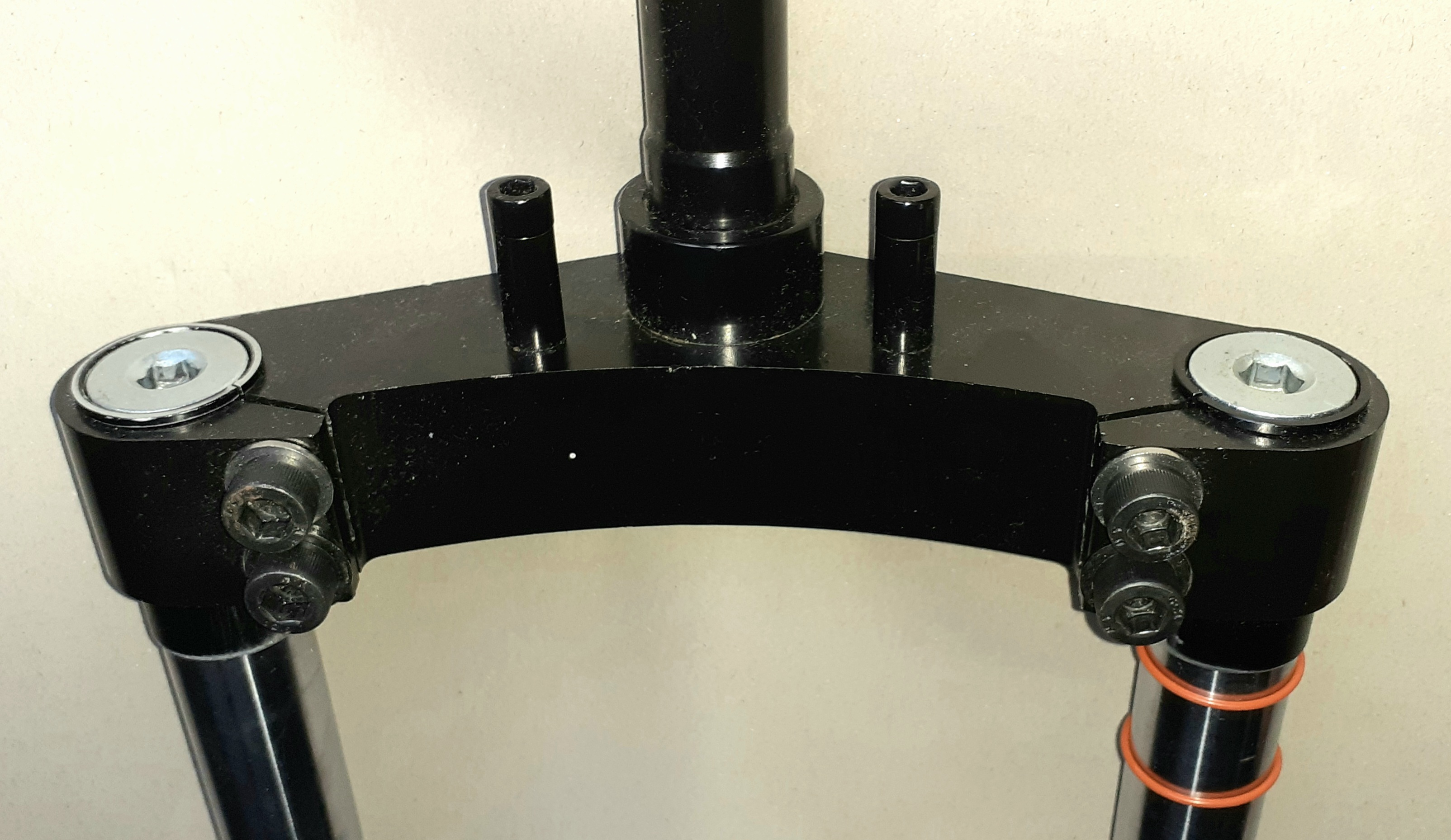 So sieht übrigens die verzogene Gabelbrücke aus. Habe eine neue, leider konnte man das Lenkkopflager nicht ablösen und ich habe mal ein neues bestellt, mal kucken ob die mir das passende schicken (habe dem Händler Fotos gesendet).