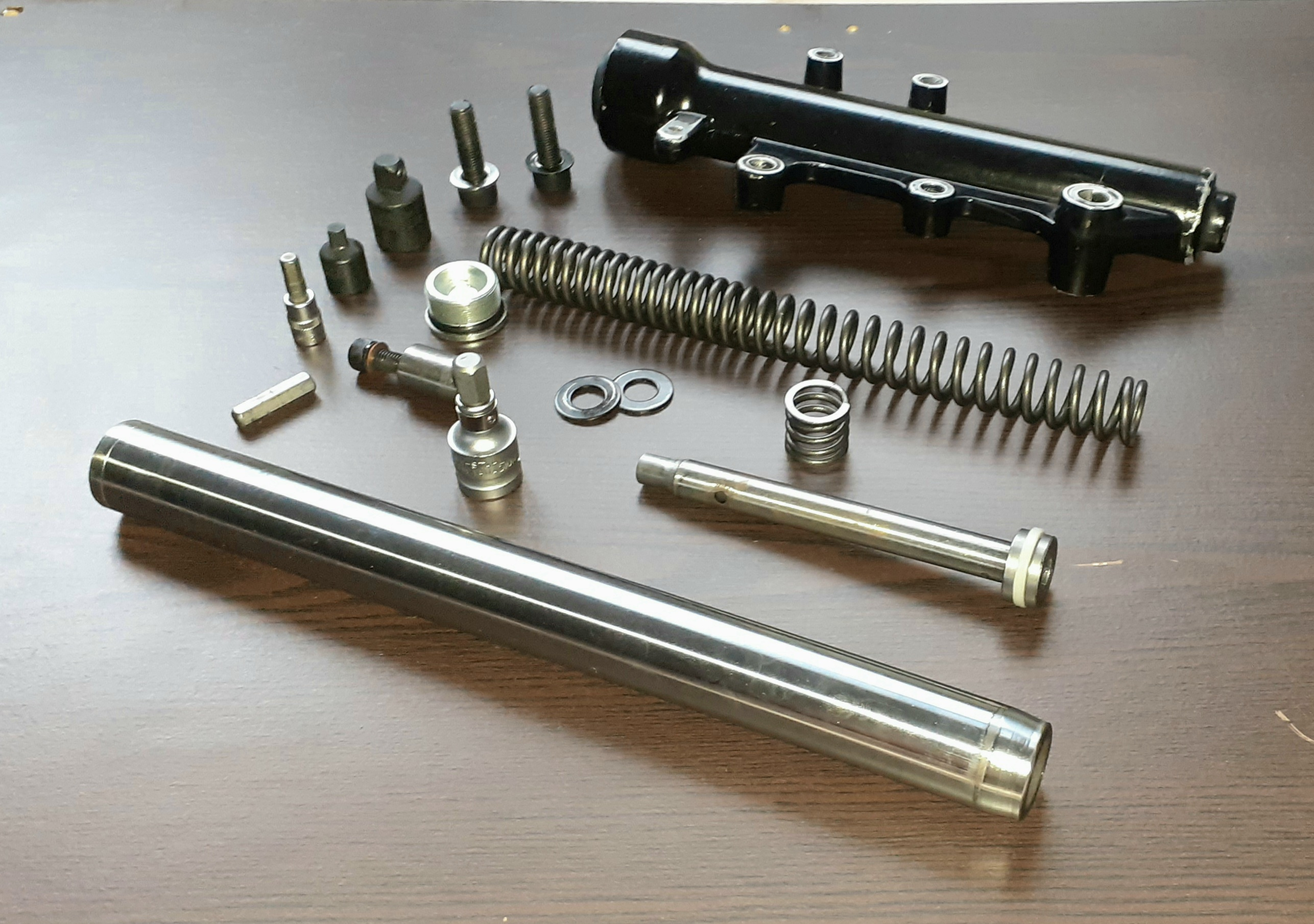 Jetzt wo du die Gabel ausgebaut hast, probier doch mal bitte bei deiner, ob sie beim Einfedern sofort sauber anspricht. Meine hat beim Einfedern etwa 3 mm Leerweg, durch zu geringe Federvorspannung. Entweder von Anfang an durch Einbautoleranzen oder, weil sich die Feder im Laufe der Zeit gesetzt hat. Merkt man beim normalen Fahren wahrscheinlich auch gar nicht, weil da immer ein Negativfederweg durch das Fahrzeug- + Fahrergewicht vorgespannt ist, der größer als die paar Millimeter ist. Obwohl meine im eingebauten Zustand auf den ersten Millimetern auch so manchmal etwas unsensibel ansprach, zumindest wenn man im Stand vorne wippt.