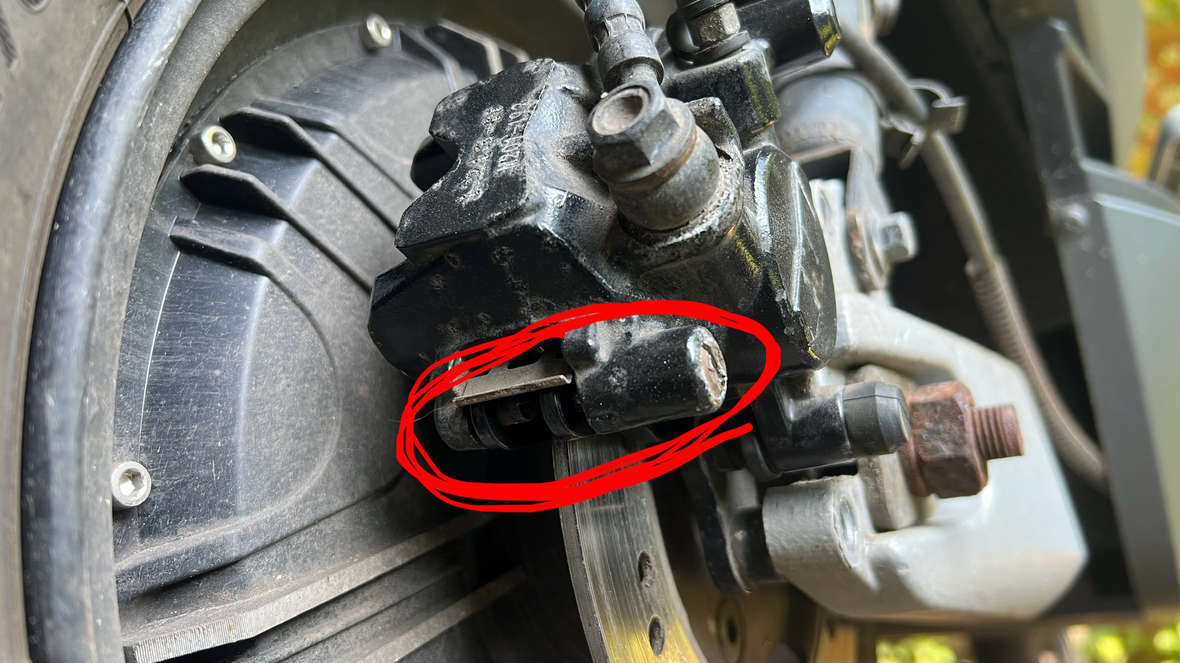 Ich musste bei meinem NQI die hinteren Bremsbeläge wechseln. Weil der Führungsbolzen bzw. die kleine Schlitz-Schraube komplett festgegammelt war (warum nimmt man ausgerechnet dafür eine SCHLITZ Schraube? Ich kann nicht mehr...), habe ich den Bolzen mit der Hand in der Mitte aufgesägt.