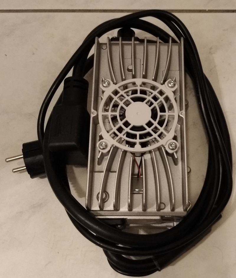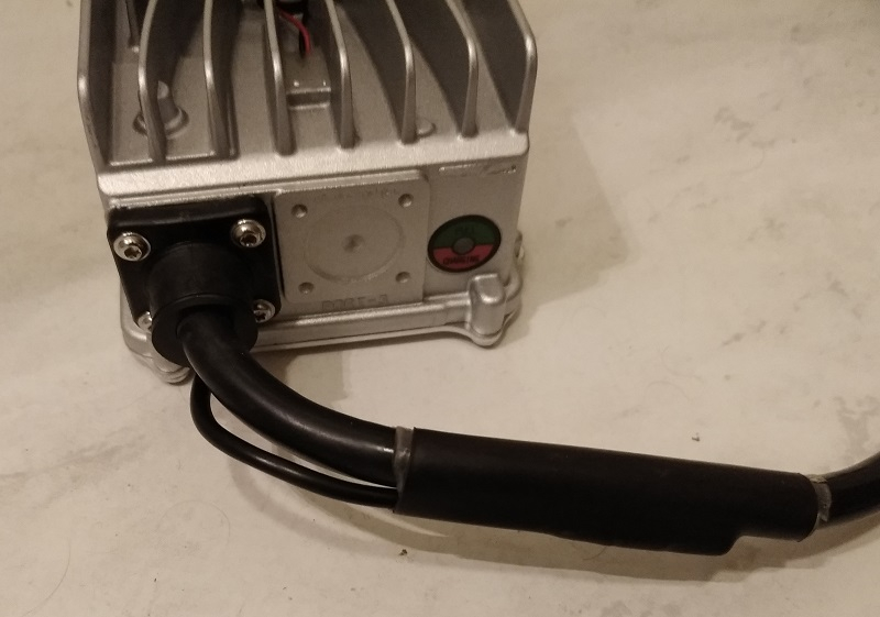 Das Gehäuse scheint komplett vergossen zu sein, es ist relativ schwer und soll wasserdicht sein (was ich auch glaube). Wobei - den kleinen Lüfter oben drauf hat vermutlich keiner nach seiner Meining gefragt. :) Die Kabeleinführungen sind alle ordentlich vergossen. Ein echter Knickschutz ist leider nicht vorhanden, das Kabel knickt nach dem Kabelauslass einfach ab, der Kunststoffschniepel ist nicht flexibel sondern festes Material. Der Anschluss des Ladekabels wirkt durch den Schrumpfschlauch irgendwie improvisiert. Das Netzkabel ist leider nicht abnehmbar.