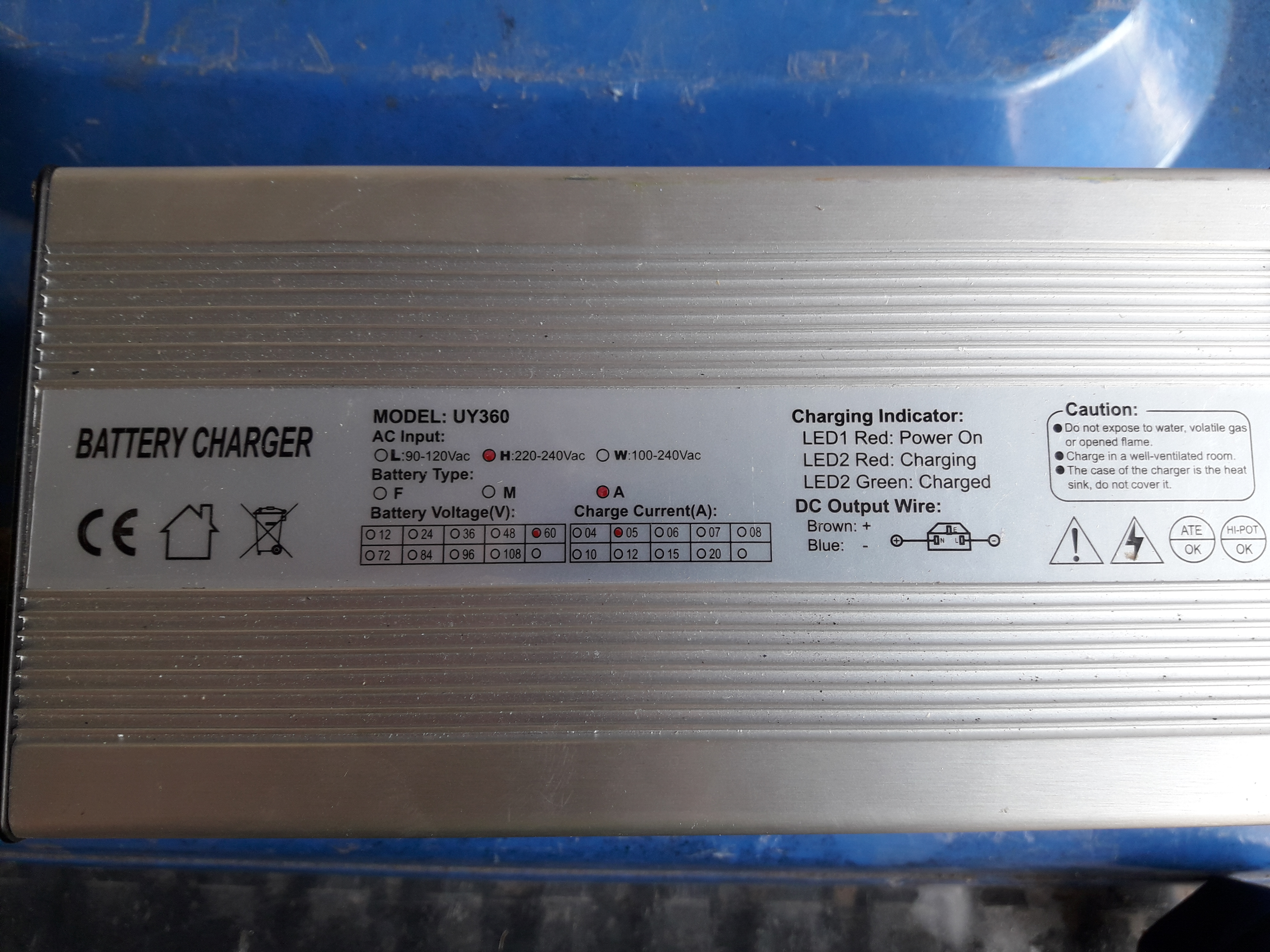 Die Bleier in Deinem sind tot, vermutlich überladen worden? Dann werden sie nämlich heiß. Der Lader ist für 60V, sprich er sollte 5 Stück 12V Blöcke ohne Schaden bespaßen können, wenn sie all im Gleichlauf sind und der Lader rechtzeitig mit Laden aufhört.