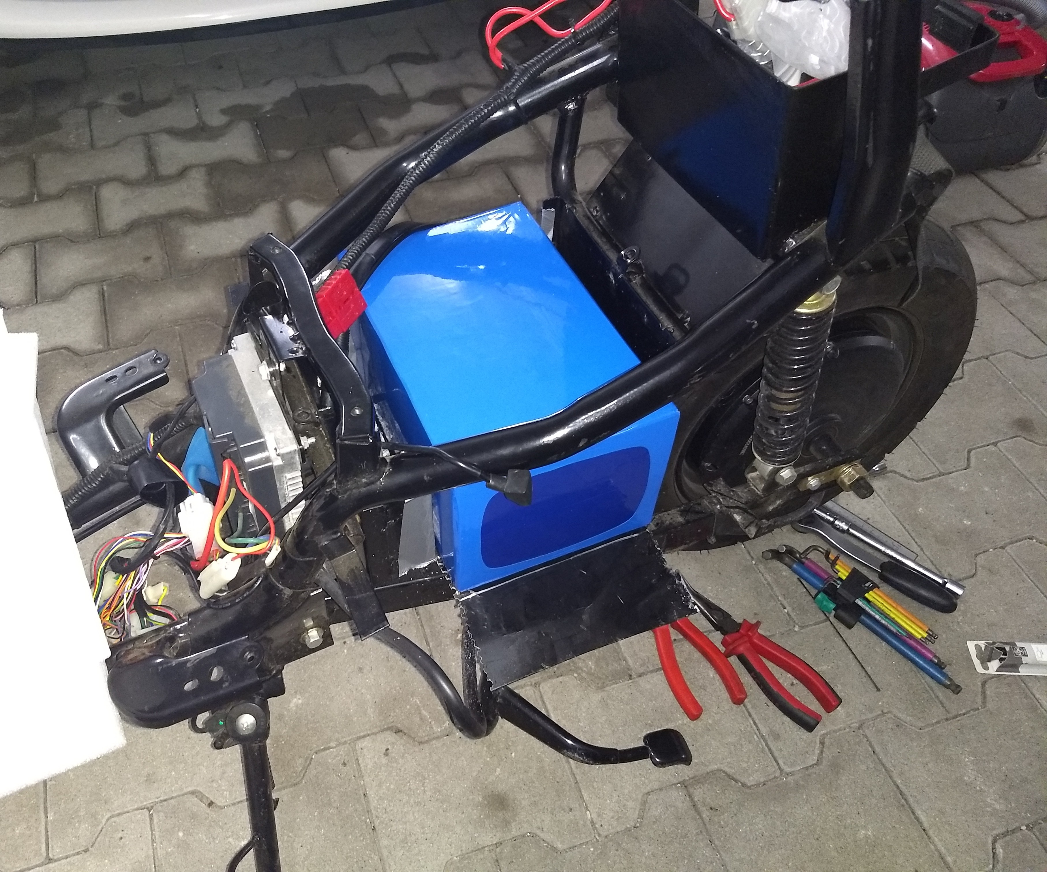 Richtig, ich habe den Akku anfertigen lassen. Hatte aber auch den Vorteil, dass beim Emace vier Bleier nebeneinander standen und einer oben drauf, bei dir wird das sehr knapp ein Li-ion mit integriertem BMS in den Dimensionen hinzubasteln wie drei Bleier nebeneinander. Zumindest nicht, wenn du mehr Reichweite haben willst.