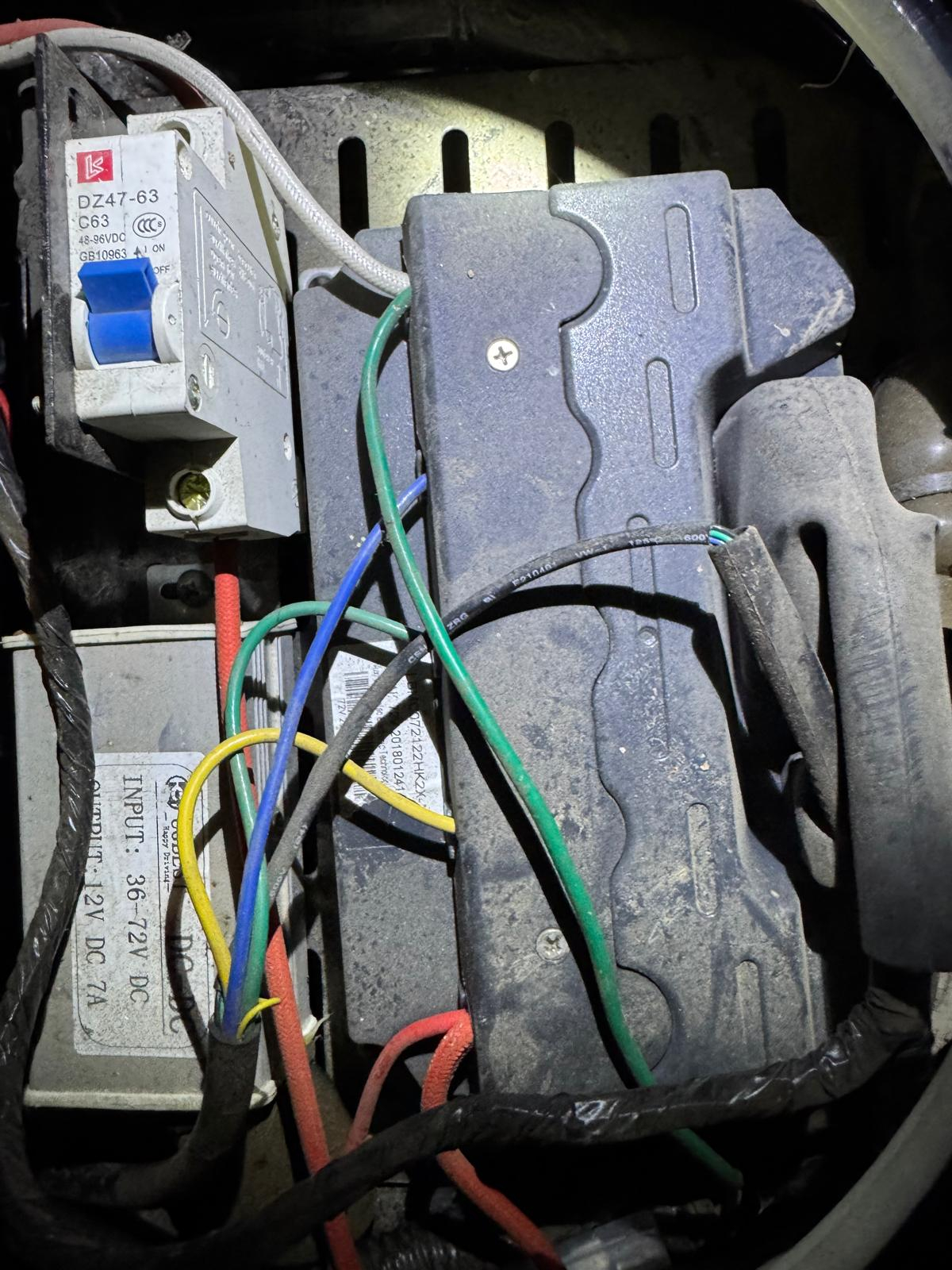 Da die Beleichtungsanlage und die Hupe nur mit rund 12 Volt Laufen gibt es noch einen Spannungskonverter (DC86V-48V auf DC 12-13 Volt) für die Erzeugung der Niederspannung.