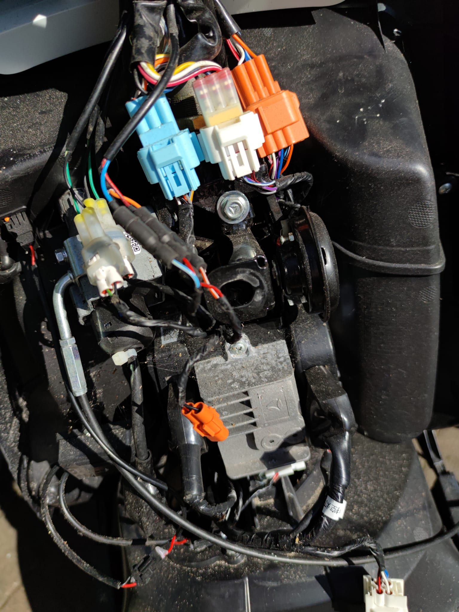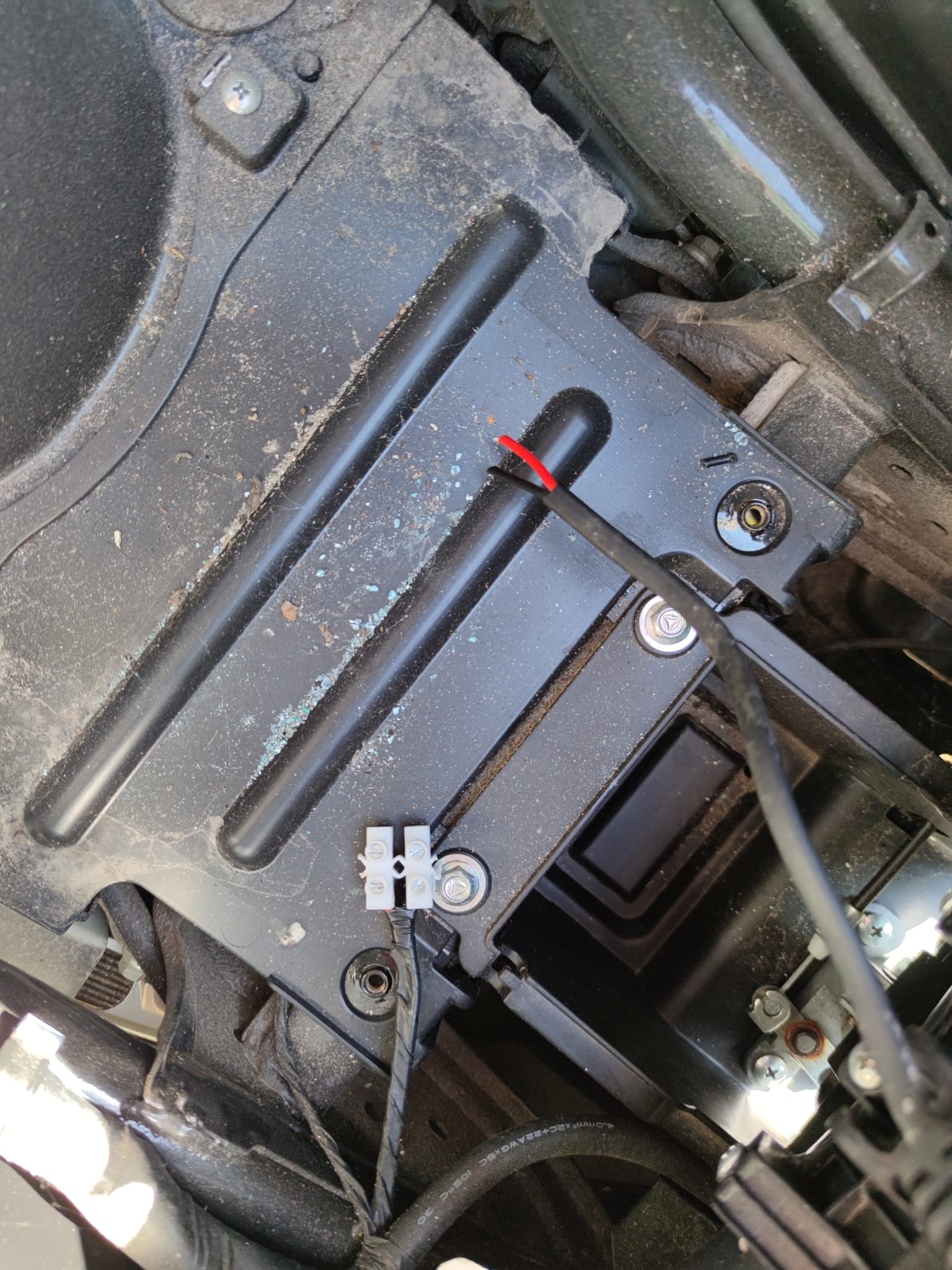 Wir haben dann die Batterie selbst geladen und das funktionierte. Es gab aber einen "Energie" Verlust. Z.b. von einem Tag auf den anderen von 70% auf 40%. Daraufhin habe ich unter der Sitzbank nachgesehen (wo der Rollerladestecker sitzt) und gesehen das hinter dem Ladestecker ein Kabelverbinder saß der vollkommen Durchgerostet war. Ich habe mir gedacht das dieser vielleicht einen Kurzschluß verursachen könnte (und damit den "Energieverlust" erklärt) und habe ihn komplett entfernt, da wir die Batterie auch direkt laden können.
