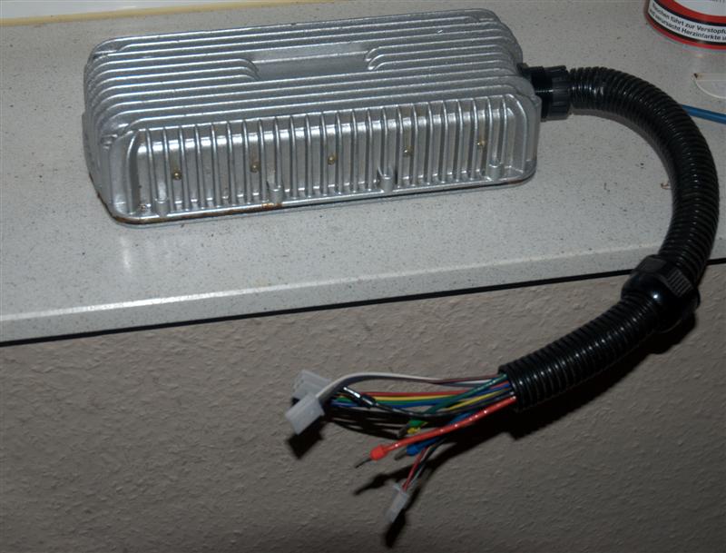 Ich trau mich nicht so wirklich den Controller direkt an den Hubmotor anzuschliessen. ( angeblich hat der nur 500 Watt ) hust hust. :roll:
