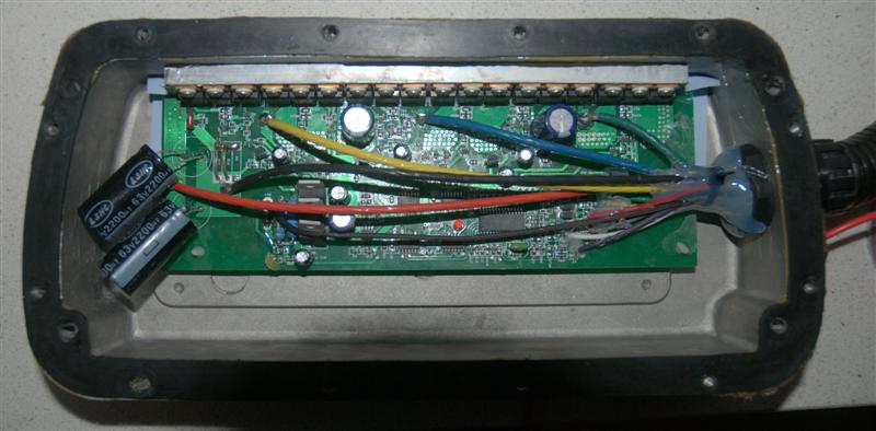 nach Kabelanschluss aussen gemessen. Ok. Elkos, (die so schräge im Controller rumhängen) kontrolliert. Ok.