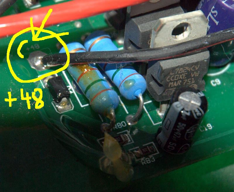 welcher recht unglücklich verlegt ist (touchiert ein Mosfet leicht und kontaktiert einen Widerstand) hier sieht es ein wenig