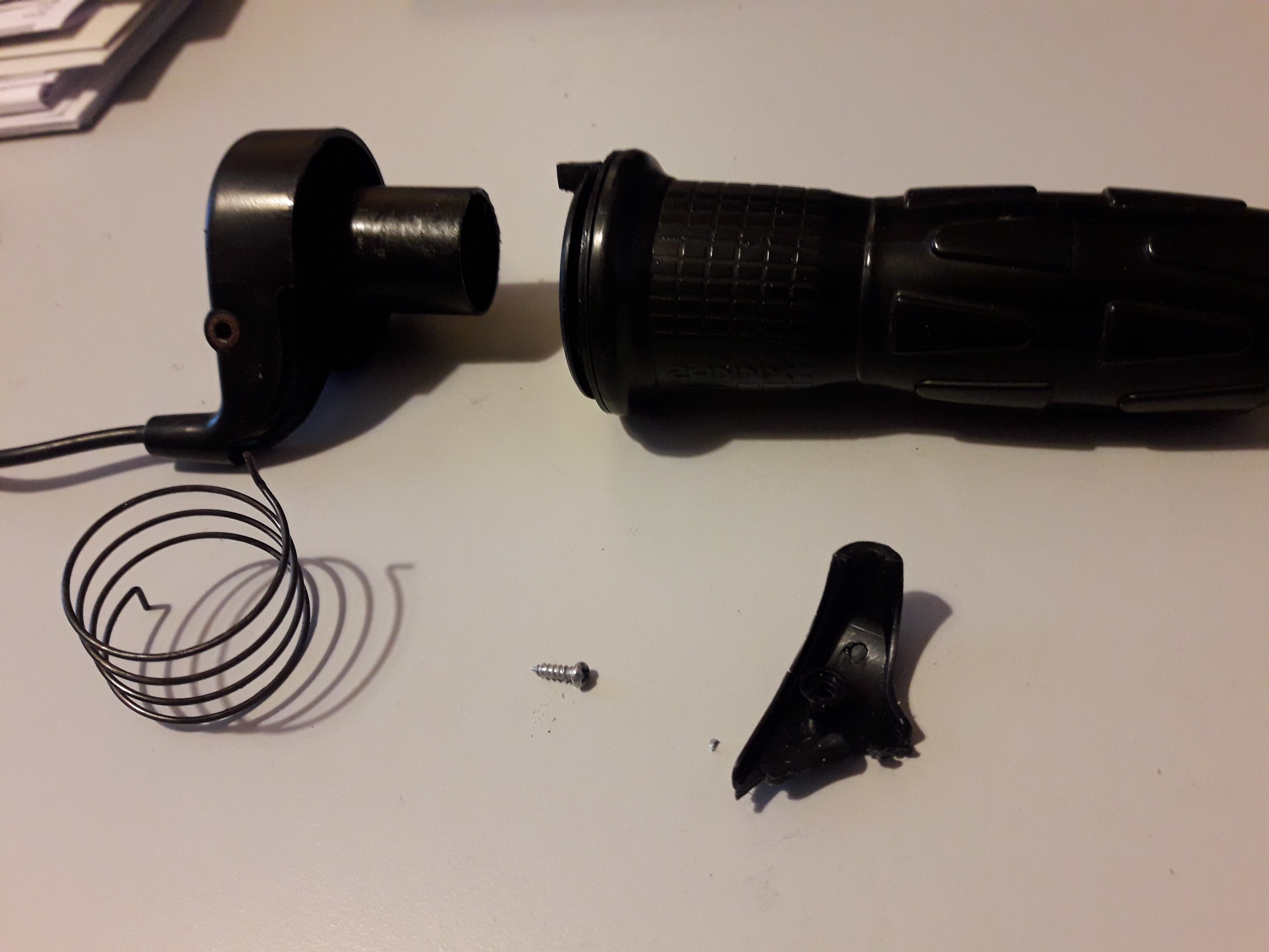 Neulich beim Überfahren eines vertieften Gullideckels musste ich den Lenker ordentlich anpacken und Zack: Stromgriff defekt. Der Magnet war abgebrochen und ich konnte gerade noch nach Hause fahren.