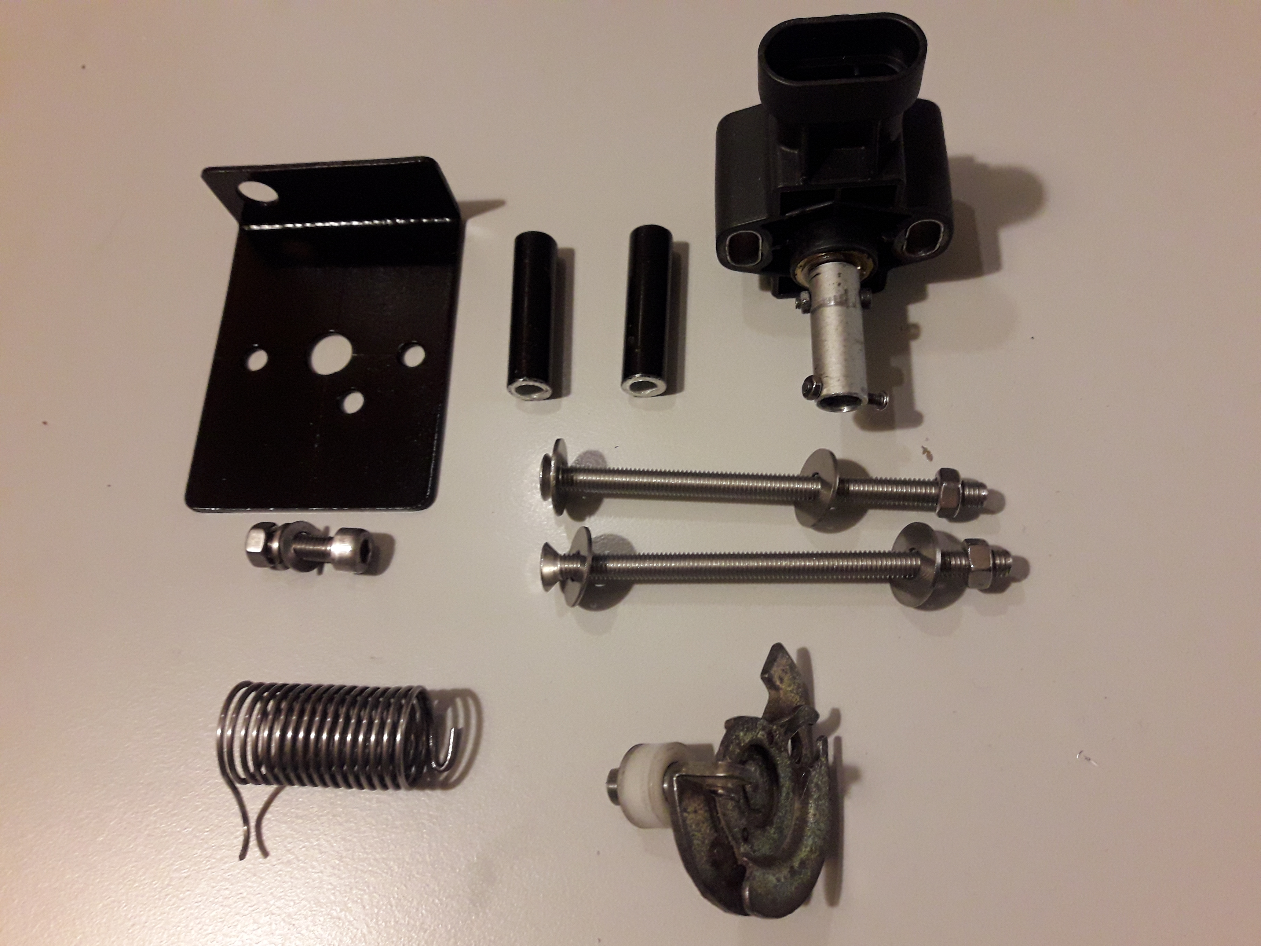 Als erstes kam mir die Idee, eine Drosselklappe von einem Roller zu nehmen. Leider gab es kaum Informationen über die Daten (Poti, Hall, Spannungen).