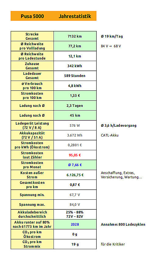 Nach einem Jahr, 7100 Kilometern und vielen gesammelten Fahrzeugdaten, habe ich eine Analyse der Betriebsdaten vorgenommen.