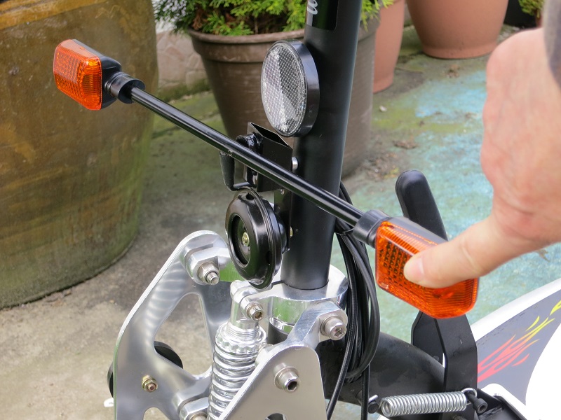 Es handelt sich bei einer solchen Nachrüstung wohl eher um Selbstschutz als sonst irgendwas, denn man kann Scooter mit so kleinen Rädchen nicht wirklich einhändig fahren, sie haben so gut keinerlei eigene Richtungsstabilität. Eigentlich müsste diese straßenzugelassene Leichtmofa-Fraktion zwecks Erlangung der Straßentauglichkeit per Gesetz zu einer Blinkanalge verdonnert werden, alles andere ist hochgefährlich (Handzeichen, Fußzeichen, ...)