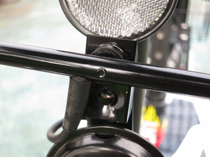 Den abgeschraubten vorderen Reflektor kann man alternativ am Einkaufskorb anschrauben.