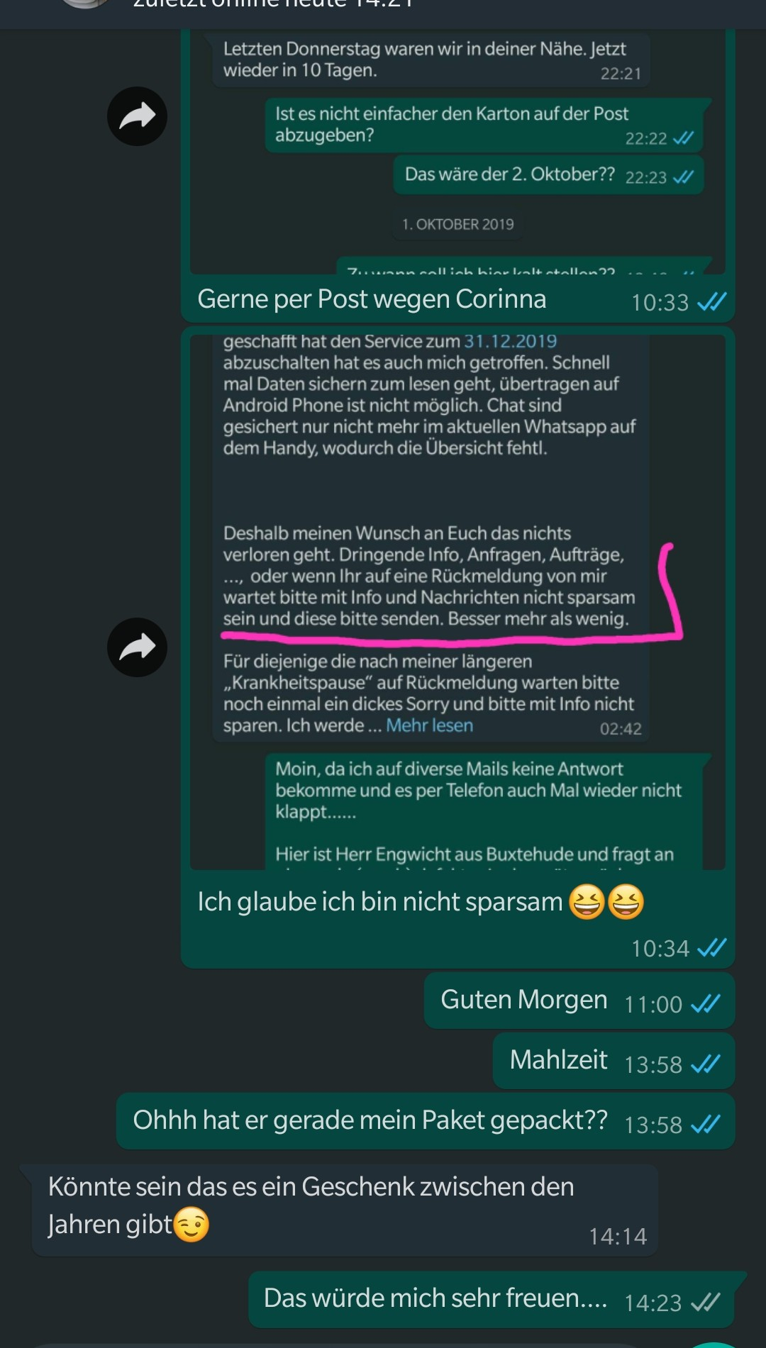 Laut WhatsApp ist ein Paket zu mir unterwegs, mal sehen was wann wo ankommt.....Die Anzeige ist aber trotzdem schon ne Woche alt......
