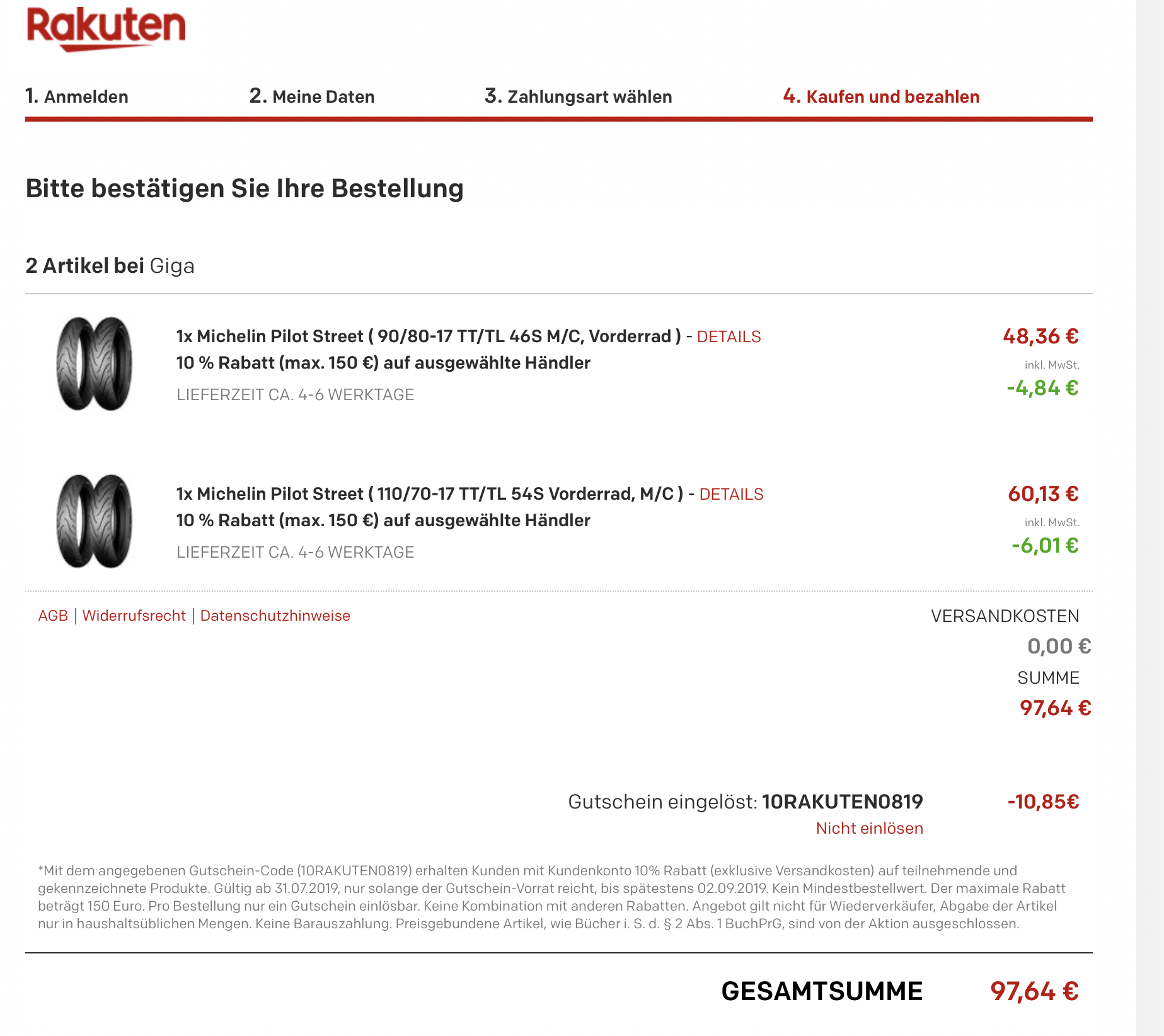 Super, vielen Dank! sehen echt noch neuwertig aus, da bin ich jetzt wirklich beruhigt, der Street Pilot kann noch bis zum Winter wartensykshs hat geschrieben: Mo 19. Aug 2019, 23:00 Hier sind Fotos von den Reifen nach 7300 Km : TC Reifen 7300 Km Vorne.jpgTC Reifen 7300 Km Hinten.jpg