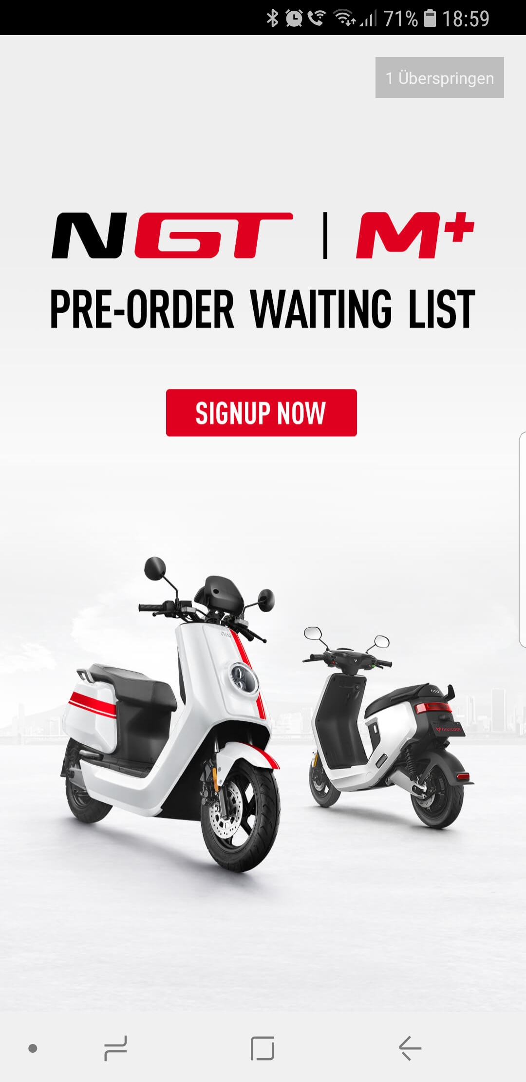 Ich konnte das Abstellen (irgendeins der Symbole unten in der Werbung: „Hinweis bein Start der App einblenden?“ oder so ähnlich hieß die Option. Jetzt ist es nur noch ein Eintrag im Startbildschirm der NIU App.