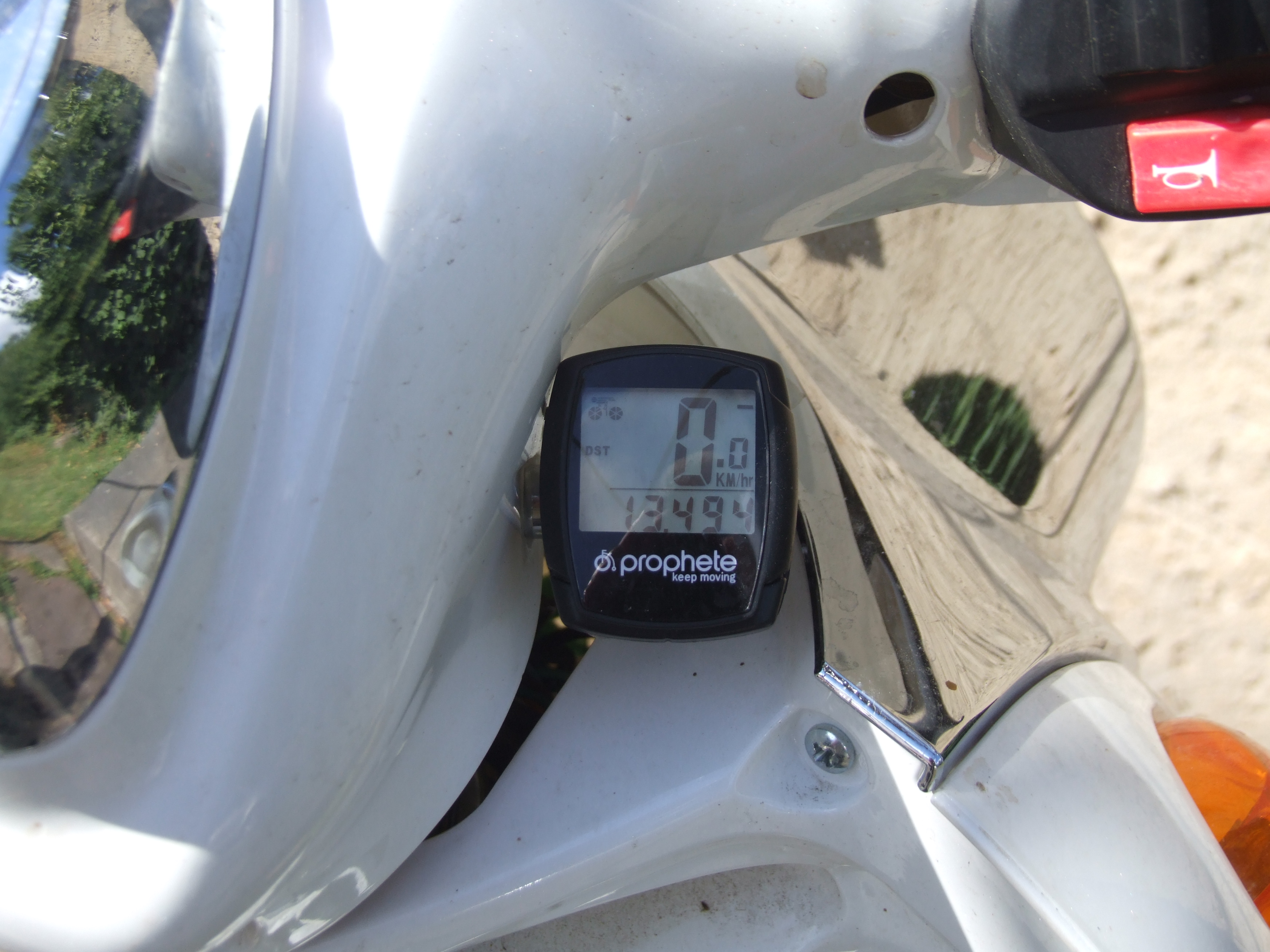 Am Tacho des NOVI C1500 ist kein Trip-Kilometerzähler eingebaut. Die Akku-Zustandsanzeige ist am Akku unter dem Sitz und somit nicht ständig im Blickfeld. Deshalb baute ich einen Fahrradcomputer an das Fahrzeug und habe die gefahrenen Kilometer pro Akkuladung immer im Blick.