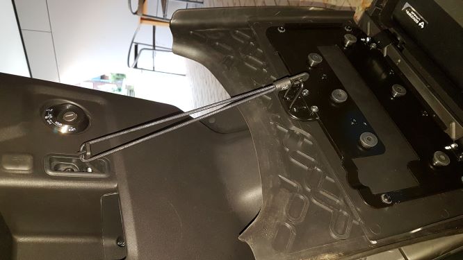 Zudem habe ich mein Helmfach mit Moosgummi ausgekleidet, damit der Helm ohne Beutel rein kann und dabei nicht zerkratzt.