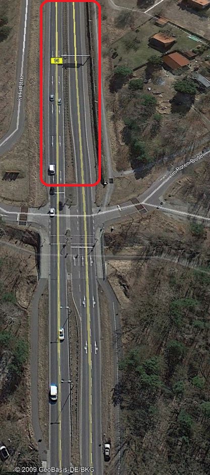 Wie auch immer, gerade als ich das Verkehrsschild „Ende Berlin“ habe links liegengelassen, wurde die bis dahin einspurige Strasse zweispurig, das blaue Hinweisschild Kraftfahrverkehrsstrasse war kurz zu sehen (aber keine Möglichkeit noch dort wegzukommen) und die anderen Verkehrsteilnehmer wurden plötzlich sehr schnell. Neben der Zweispurigkeit gabs links Leitplanken und rechts einen Standstreifen. Vielleicht doch Autobahn??