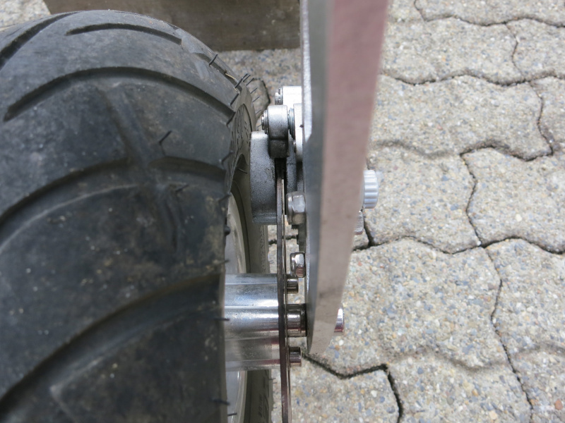 Als erstes sollte man sich einen Holzklotz beschaffen, um den eScooter aufzubocken. Beide Räder sollten frei beweglich sein.