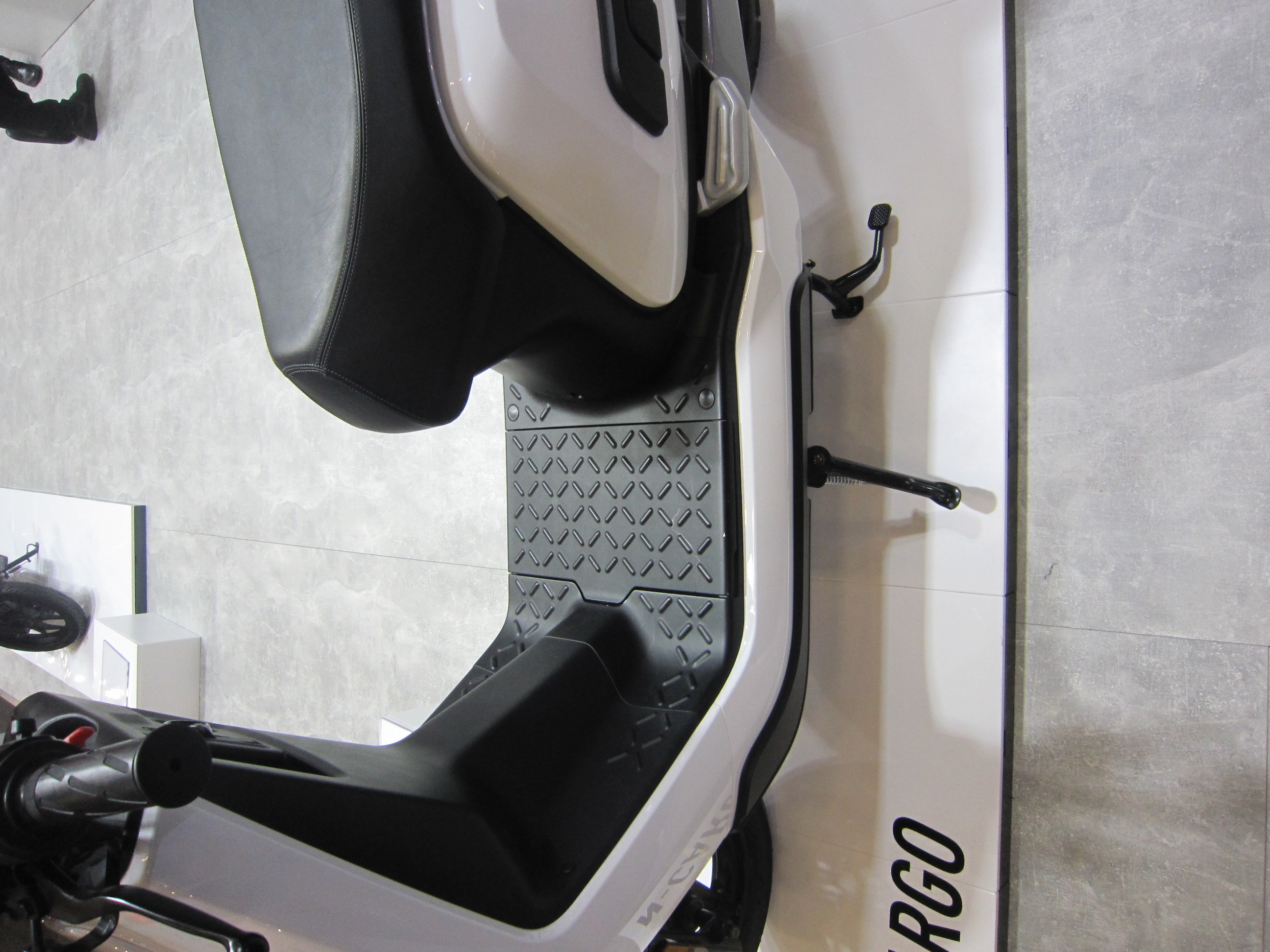 Gesehen? Die Akkuklappe ist um 180° gedreht in das Cargo-Modell angebracht, die Klappe geht also nach hinten auf und nicht wie bisher nach vorne! Das hat auch einen Grund: Im Fußraum von N-Cargo sind zwei 34AH Akkus mit Anschlüssen (also entnehmbar) untergebracht!!! Ich habe es gesehen und vor lauter Schreck vergessen ein Foto davon zu machen! Jetzt frage ich mich: Warum zum Teufel soll ich den Platz unter der Sitzbank für einen Akku opfern, wenn es eine Lösung gibt, beide Akkus entnehmbar im Fußraum zu platzieren und so den schön tiefen Schwerpunkt des NIUs beizubehalten??? Nur weil der zweite Akku weiter nach hinten durchgeschoben werden muß? Es können mit einem hinter den Akku gelegtes (Gummi-)band oder eine ähnliche einfache Lösung durchaus eine Hilfsstellung zum einfacheren entnehmen des hinteren Akkus getroffen werden. Ich bin aber nicht bereit, für den N-GT Geld auszugeben, wenn es eine bessere Lösung für diese Akkuproblematik gibt. Da warte ich lieber etwas länger, bis diese Lösung auch am N-GT oder N-GTX, falls dieser noch kommt, angeboten wird und ich den Platz unter der Sitzbank weiter als Helmfach + Regenkleidung + ggf. Ladegerät nutzen kann und weiterhin einen schönen tiefen Schwerpunkt habe und mir sagt mein Verstand das diese Lösung für den N-GT kommen muß, jetzt wo bekannt ist, das sich zwei Fahrakkus im Unterboden unterbringen lassen!